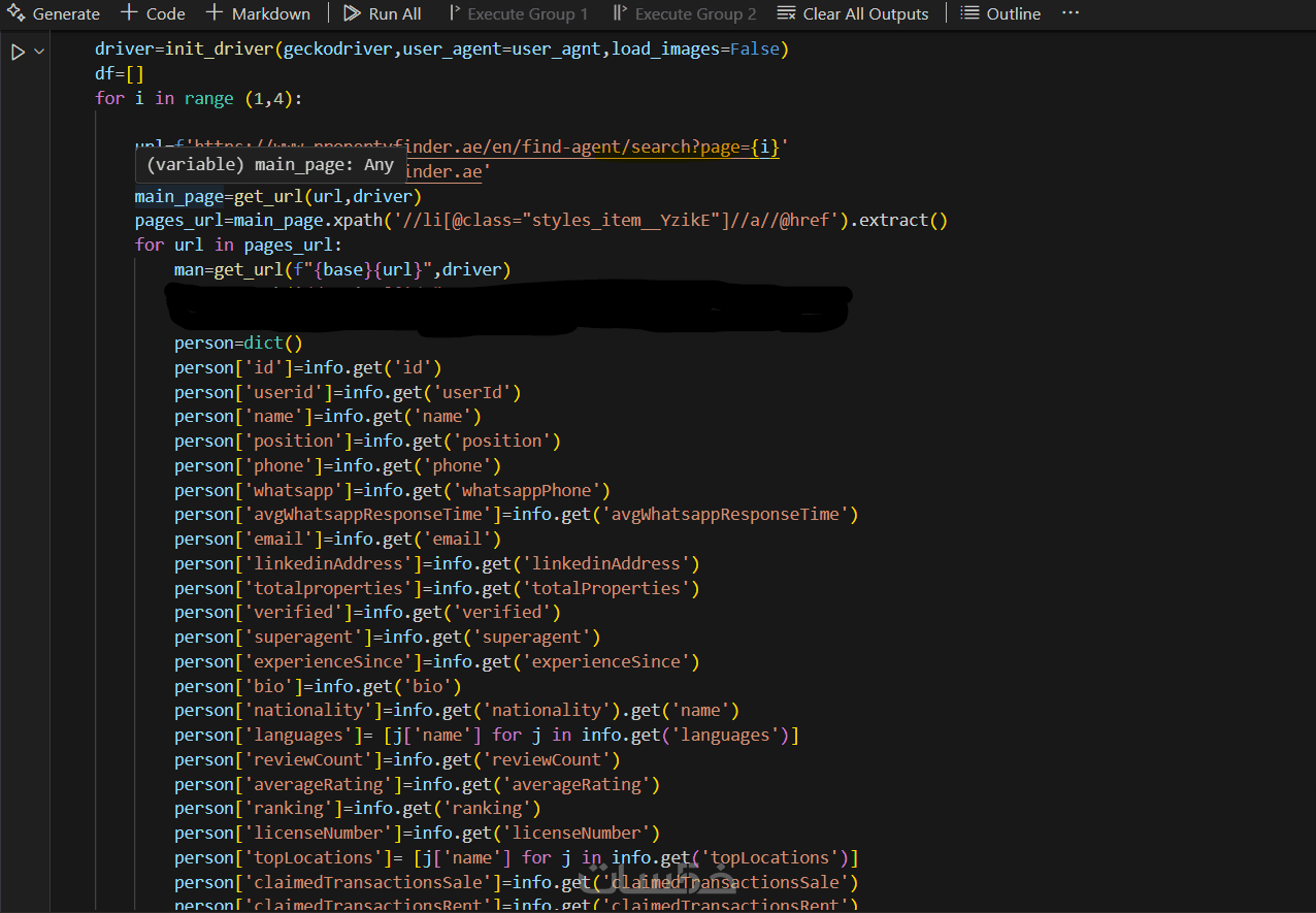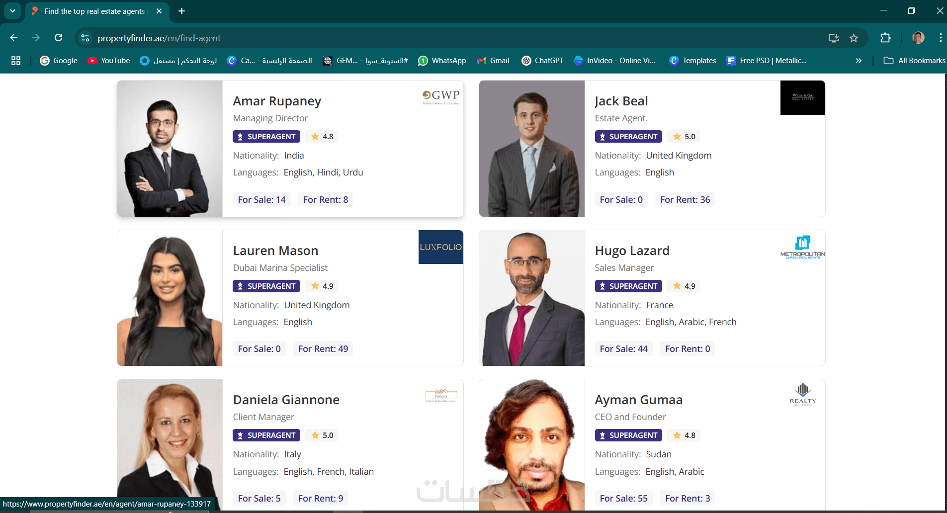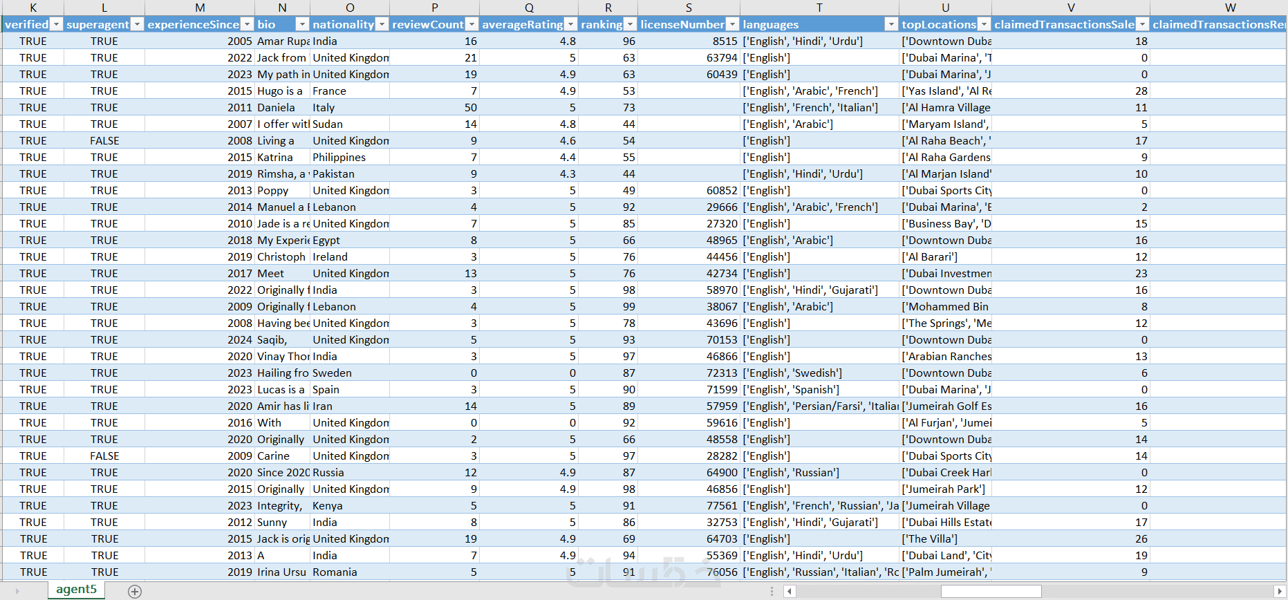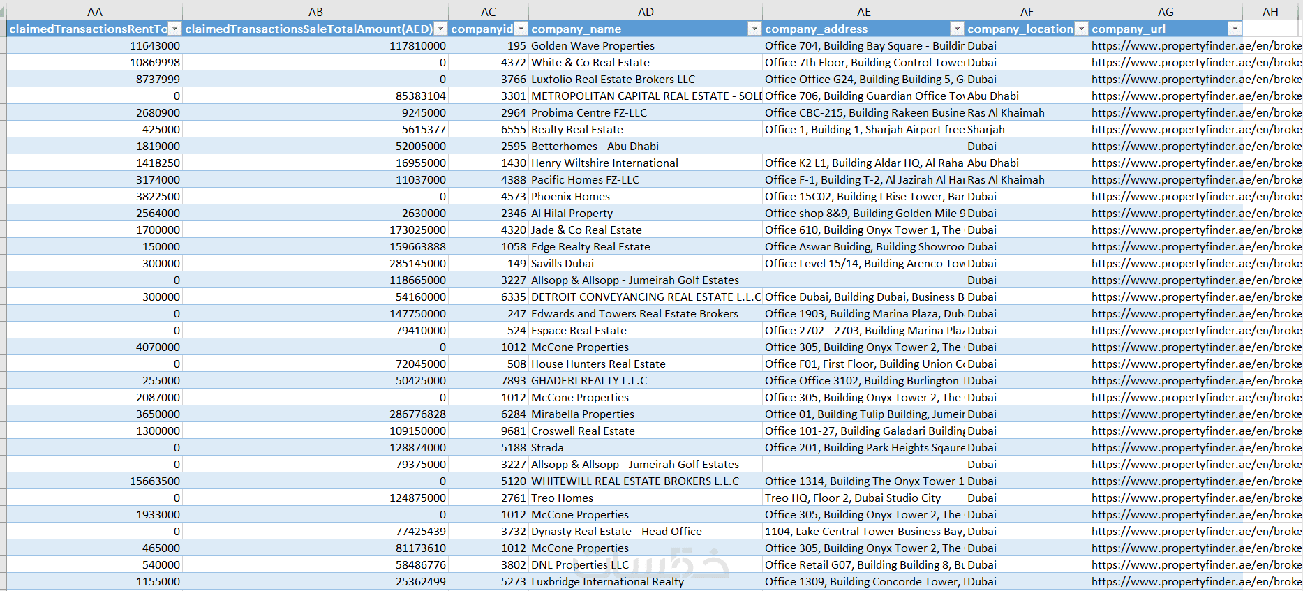 استخراج بيانات الوكلاء العقاريين من موقع property finder الخاص بالتسويق العقاري بدبي
