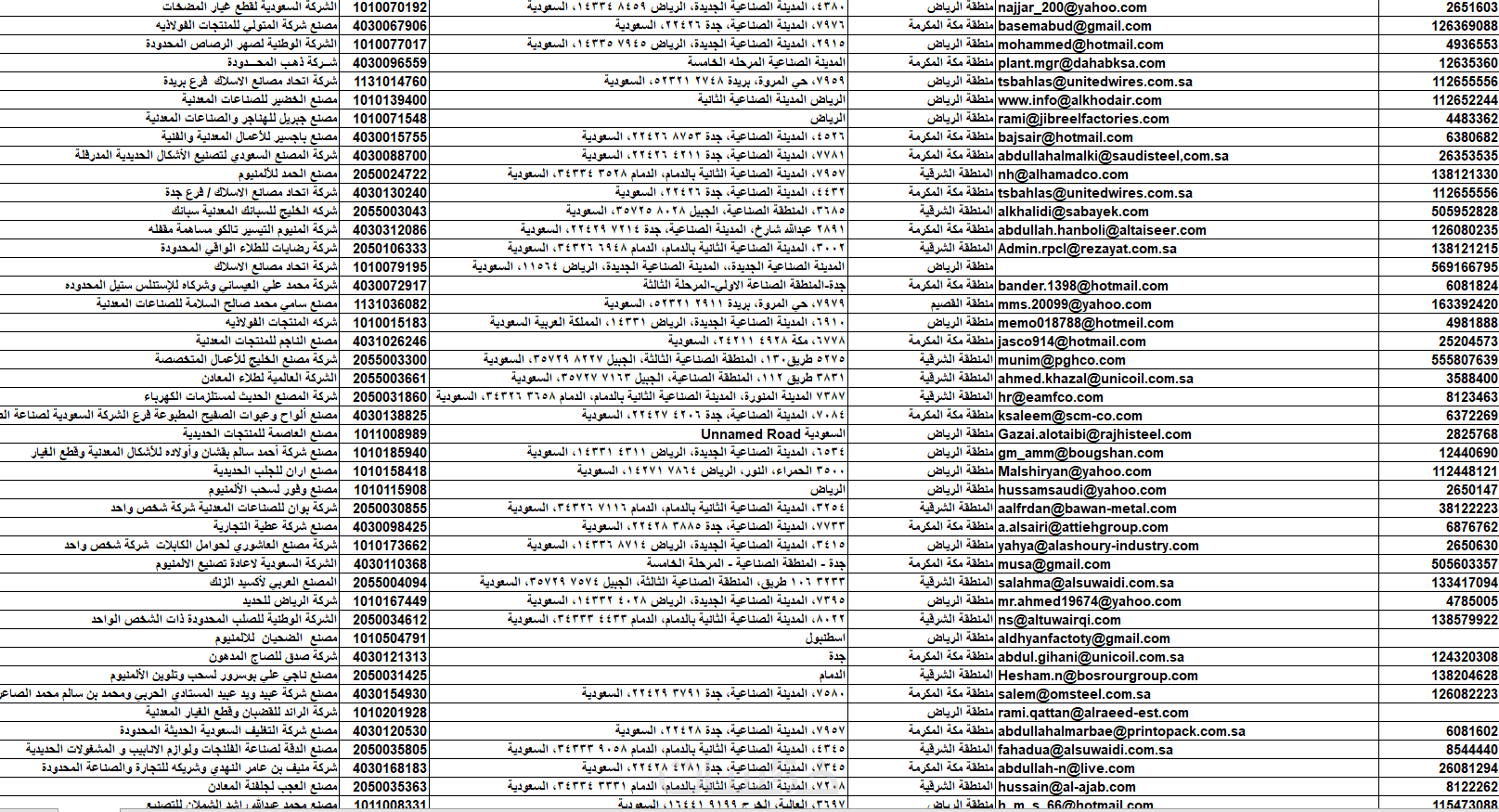 الداتا عبارة عن ملف إكسل يحتوي على بيانات 1000شركة ومصنع في مجال الصناعات الحديدية والمعدنية