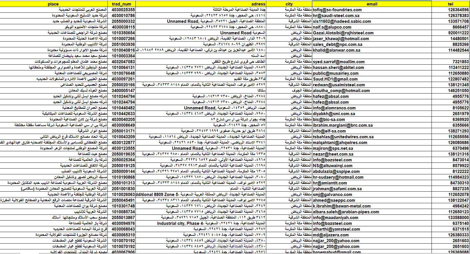 ستحصل على ملف يحتوى على 1000شركة ومصنع وكل البيانات حقيقه مستخرجة من مواقعها الرسمية من اعدادي الخاص .
