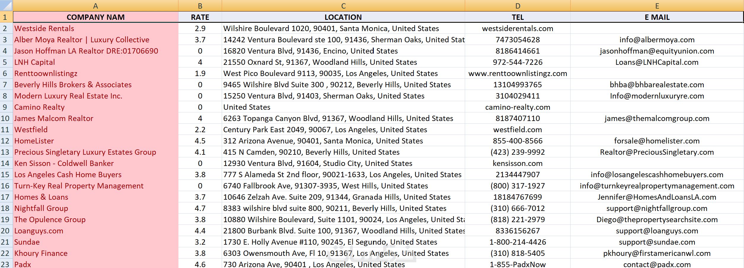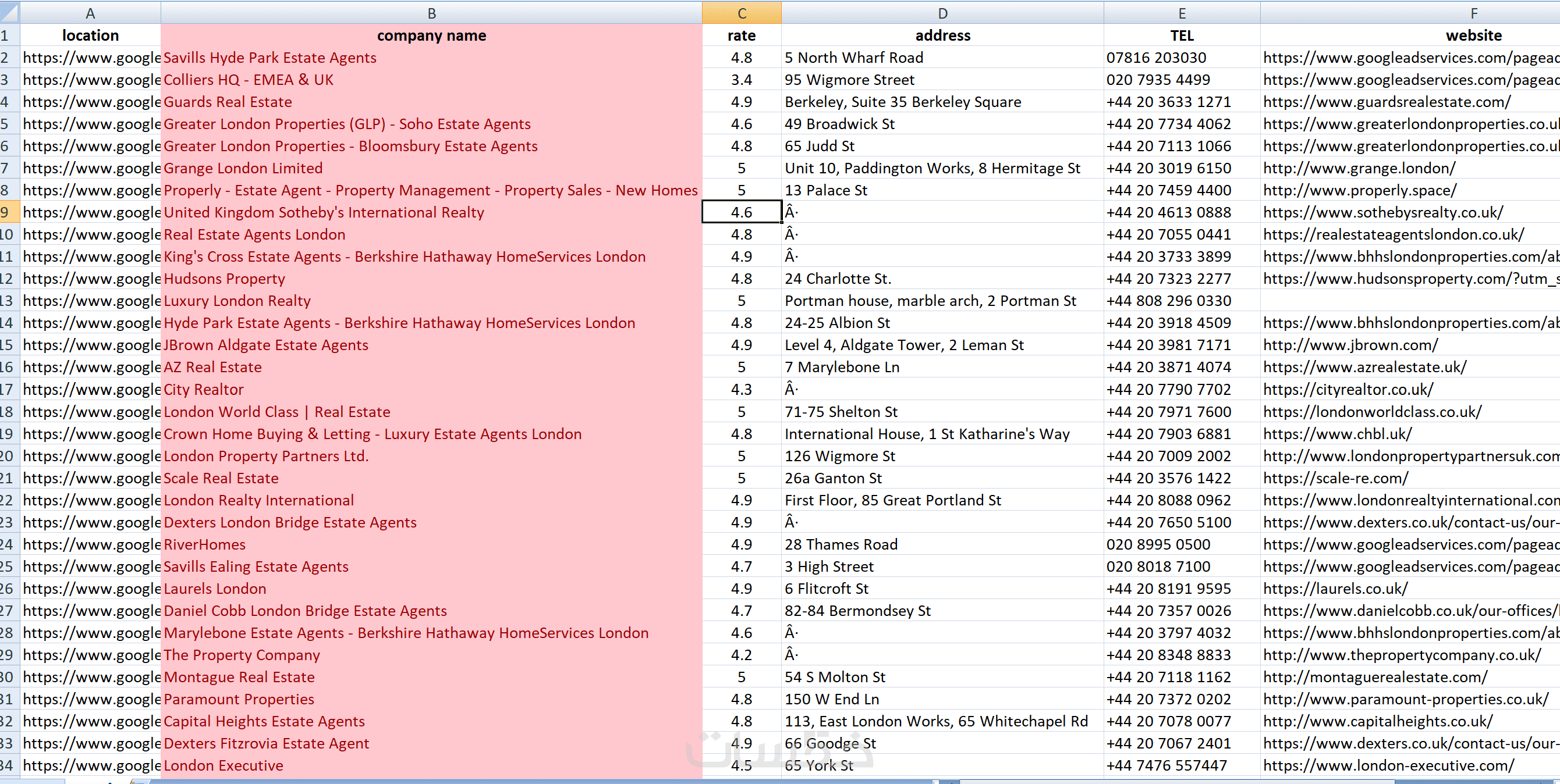 استخراج جهات الاتصال (إيميلات، أرقام هواتف من مواقع الشركات).