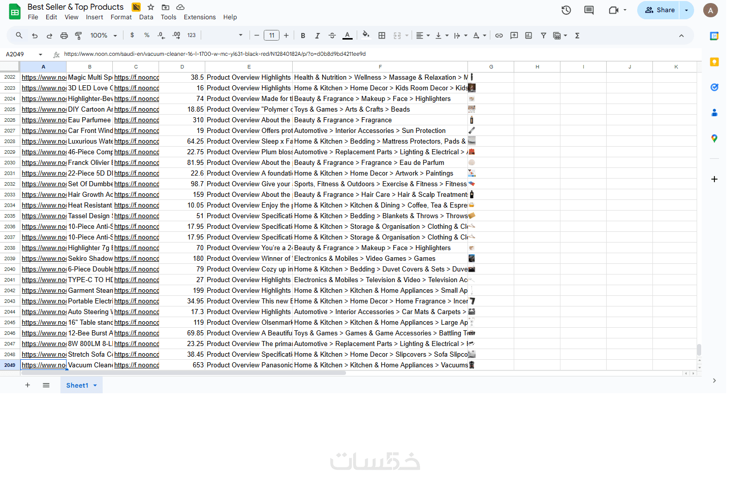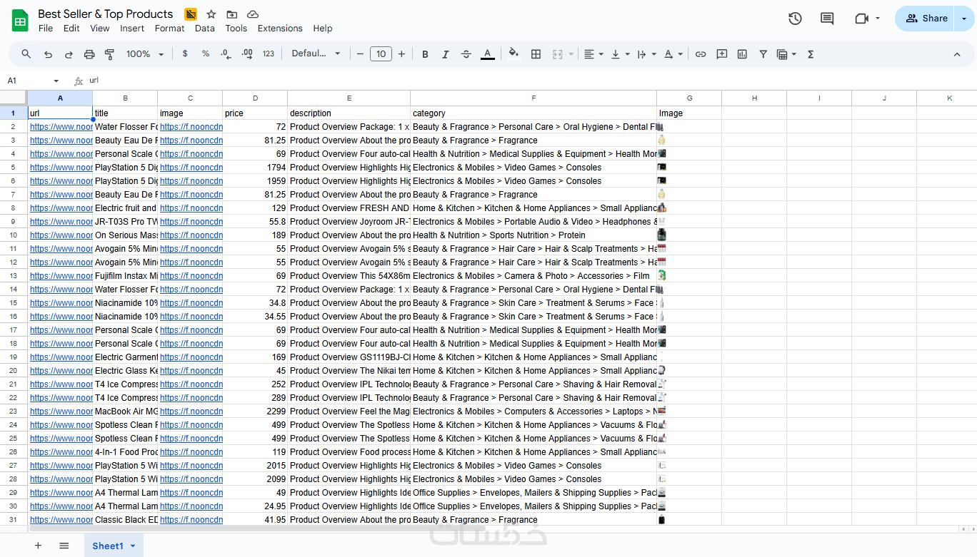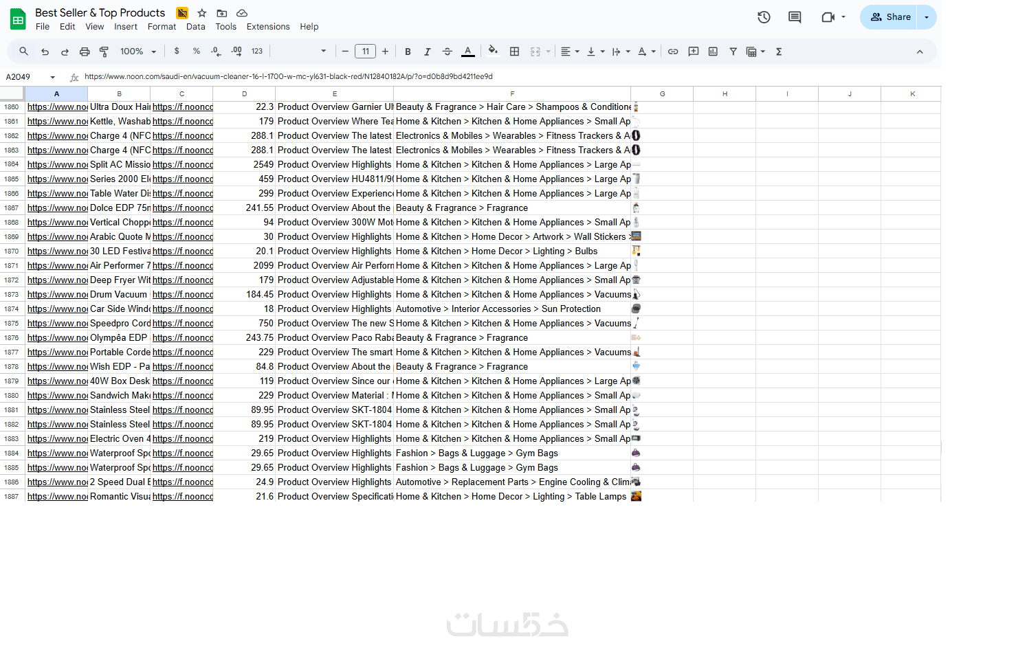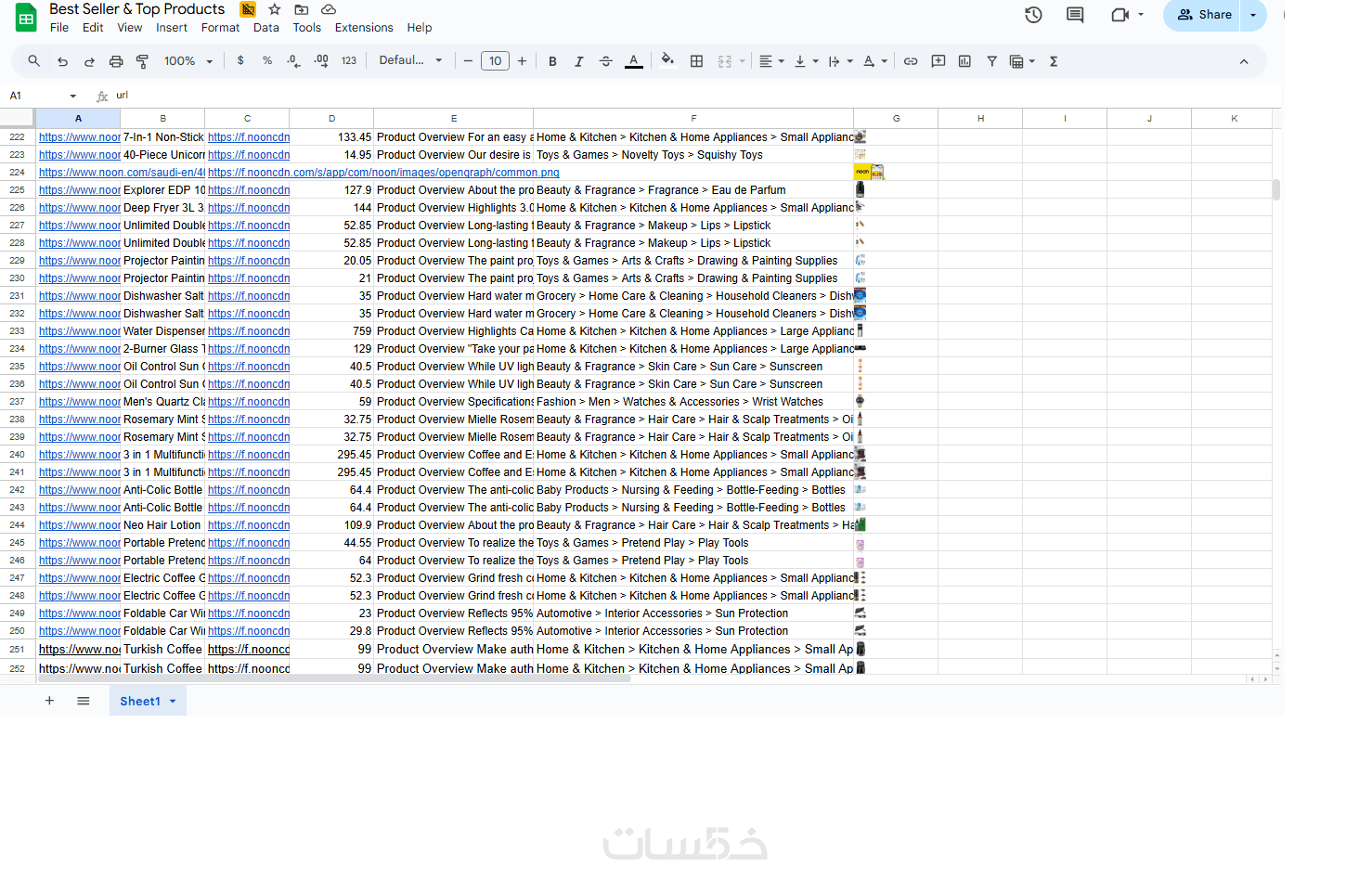 أستخراج بيانات 2000 منتجات الاكثر مبيعا على نون السعودية و مصر البيانات تحتوى على اسم المنتج وصفة سعرة صورتة التصنيف