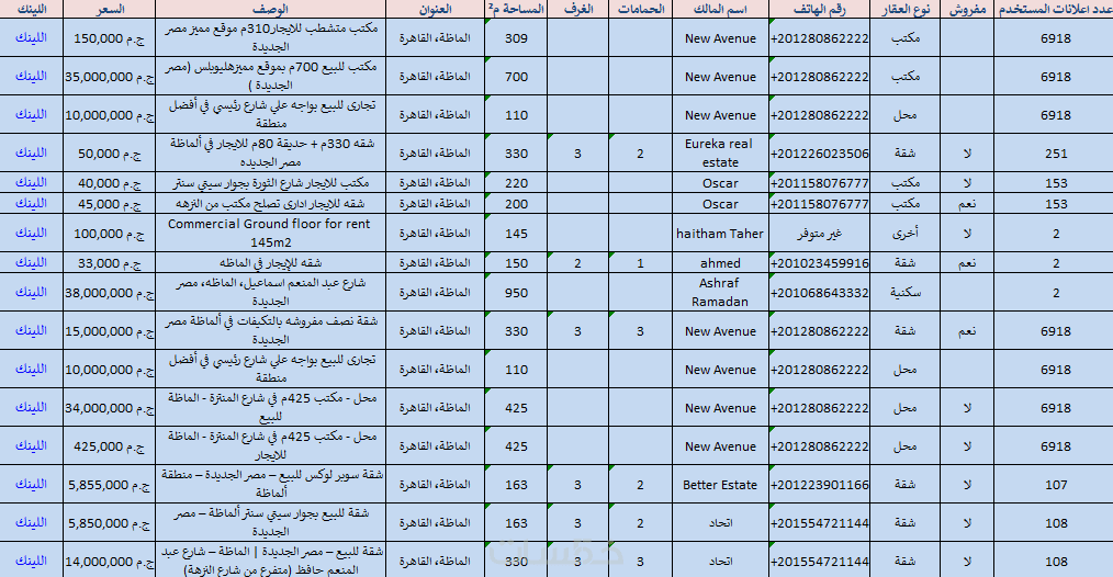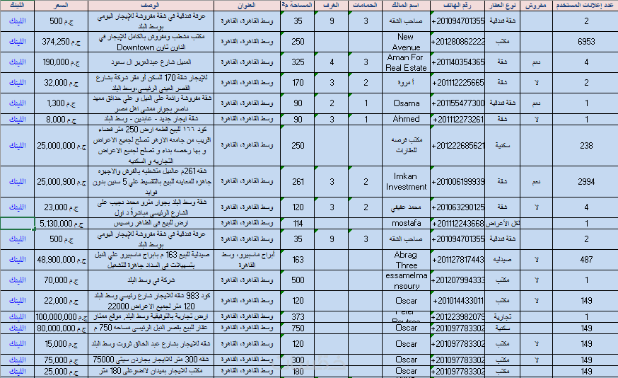- قوائم عقارات أو وظائف أو مطاعم