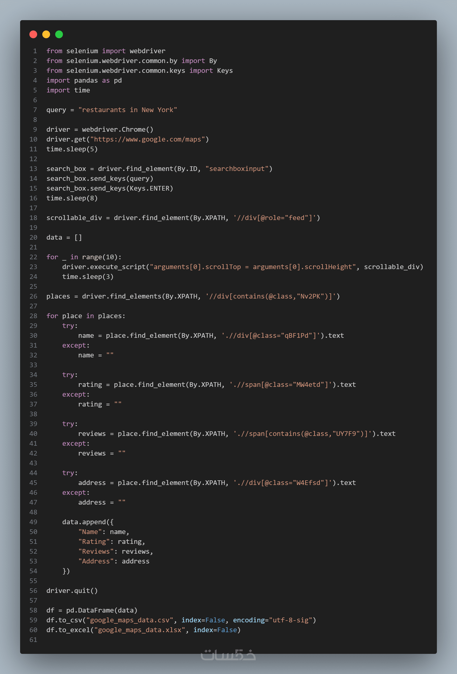بيانات من خرائط Google (أسماء، عناوين، تقييمات)