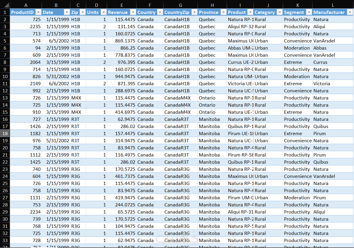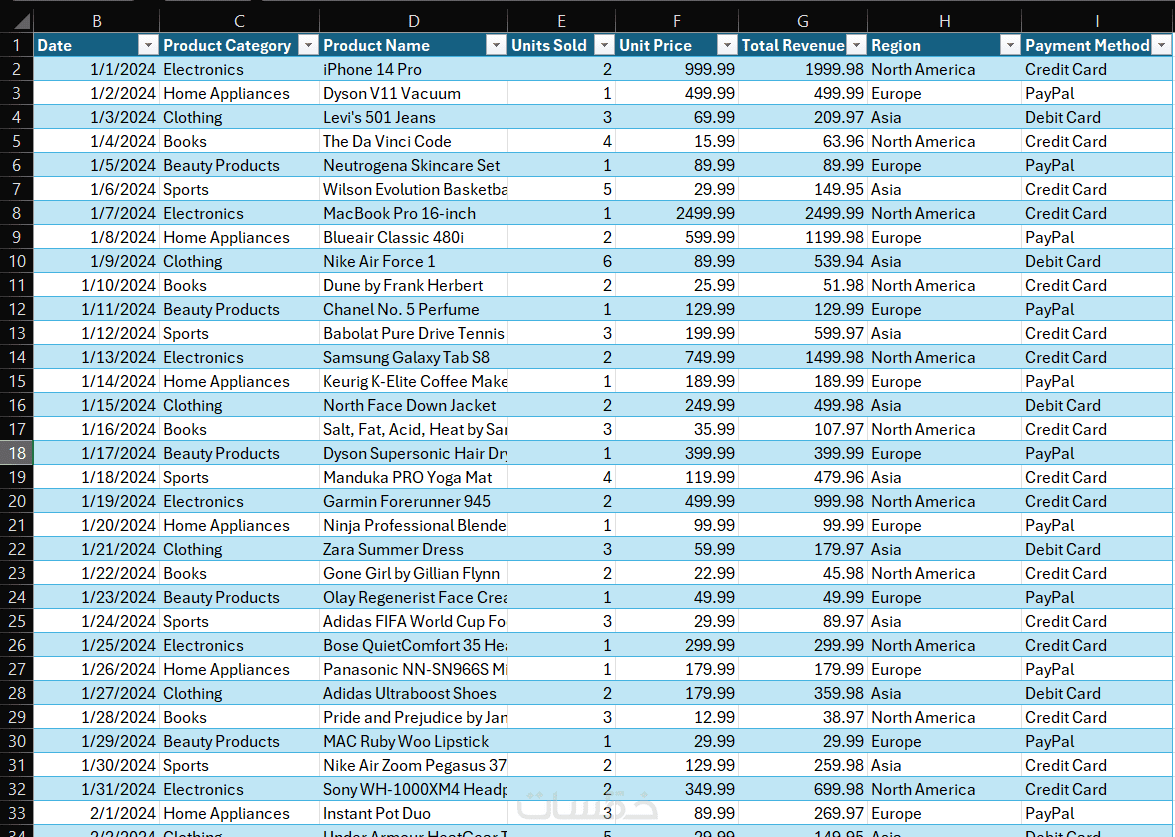 ملف بيانات منسّق ومنظّم حسب طلبك