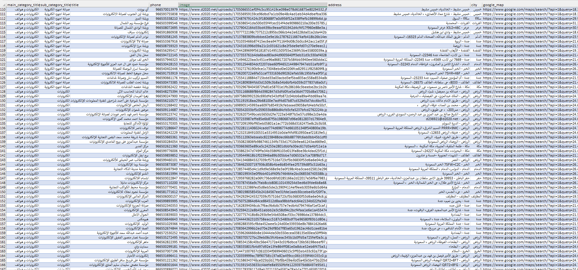 * بيانات الشركات والفنادق والعقارات والأطباء وغيرها.