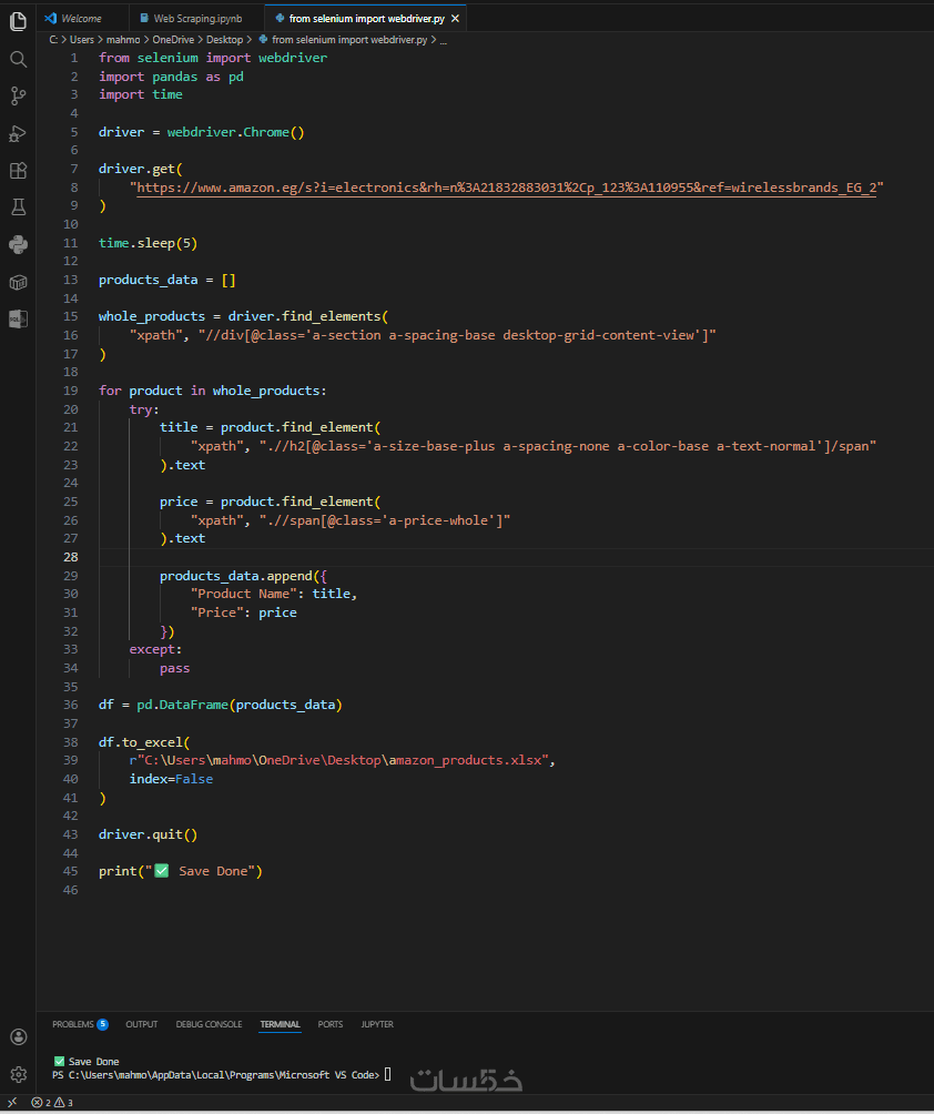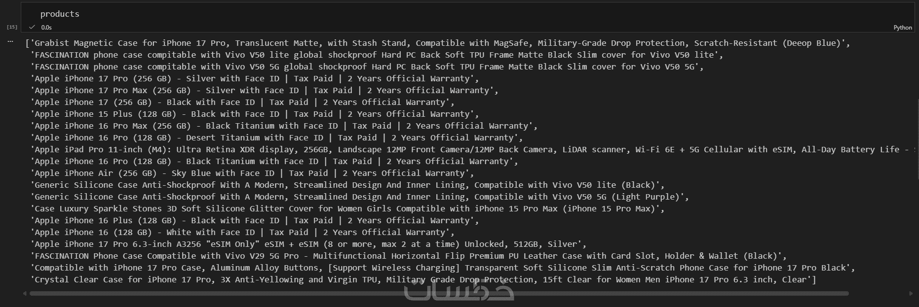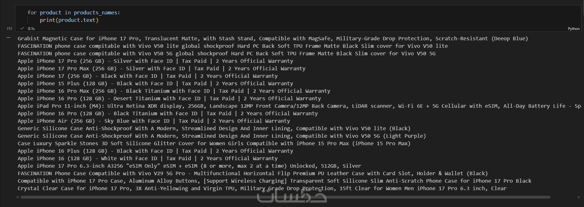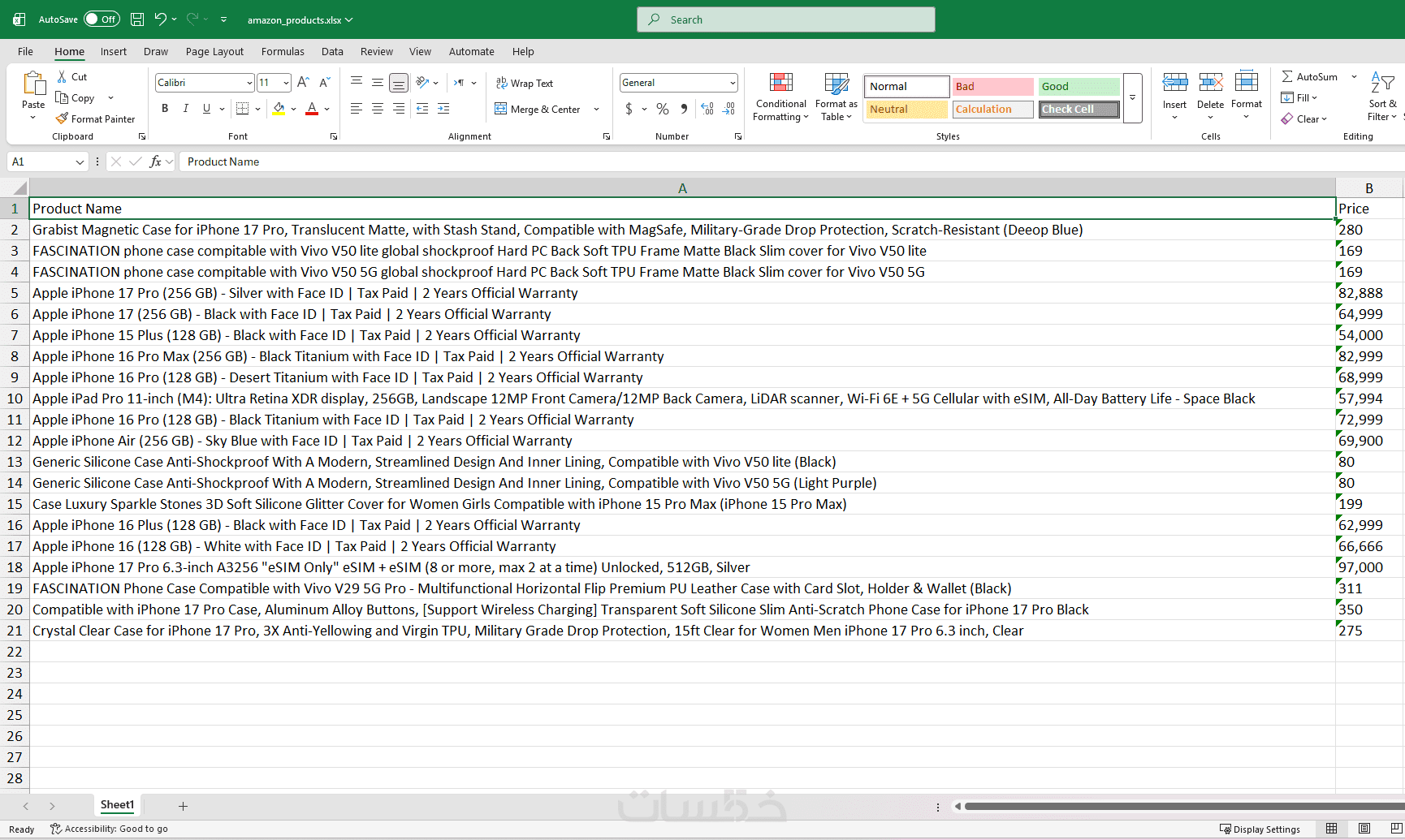 ملف بصيغة Excel أو CSV يحتوي على كافة بيانات الصفحة (الاسم، السعر، التقييم، والوصف).
