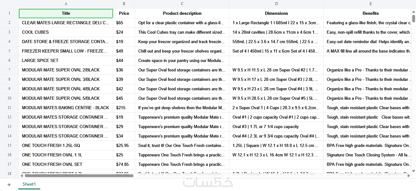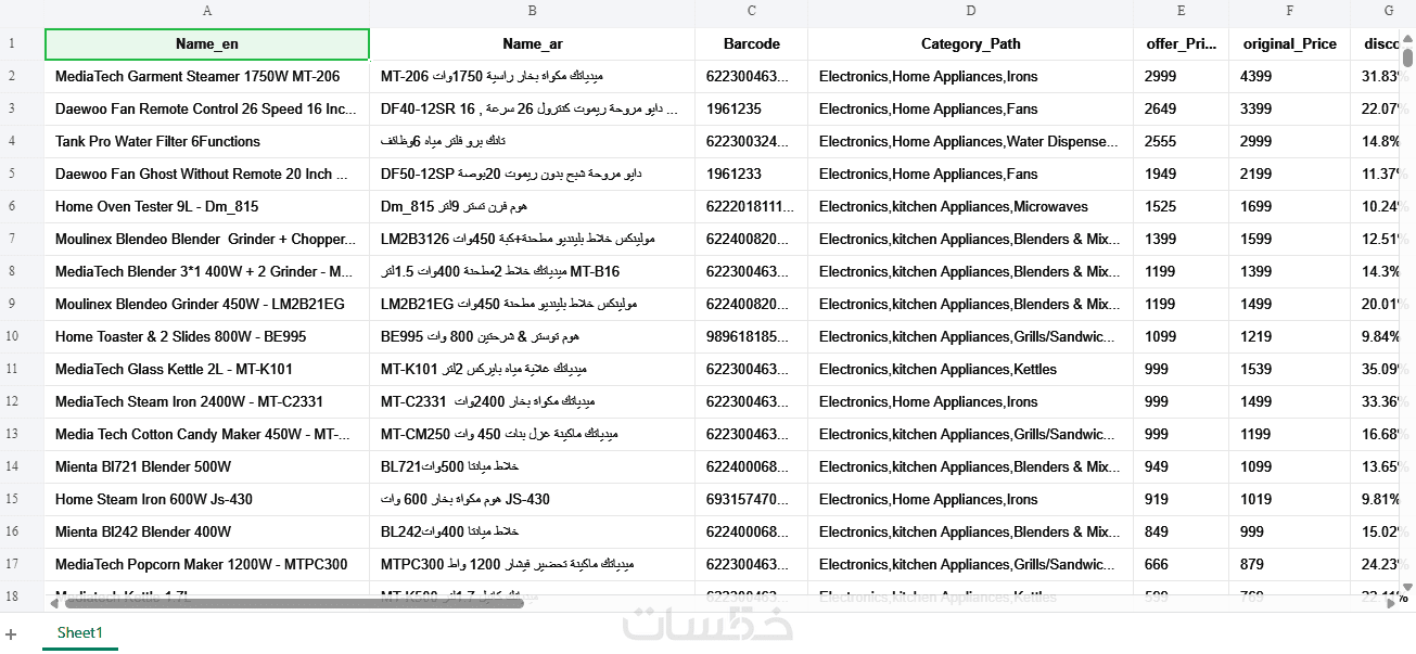 - أمثلة للبيانات: أسماء المنتجات، الأسعار (الحالي/قبل الخصم إن وُجد)، التوفر، التقييمات وعدد المراجعات، الوصف/المواصفات، التصنيفات، روابط المنتجات، وروابط الصور مع إمكانية تنزيلها (حسب توفرها)، وأي حقول ظاهرة بالموقع.