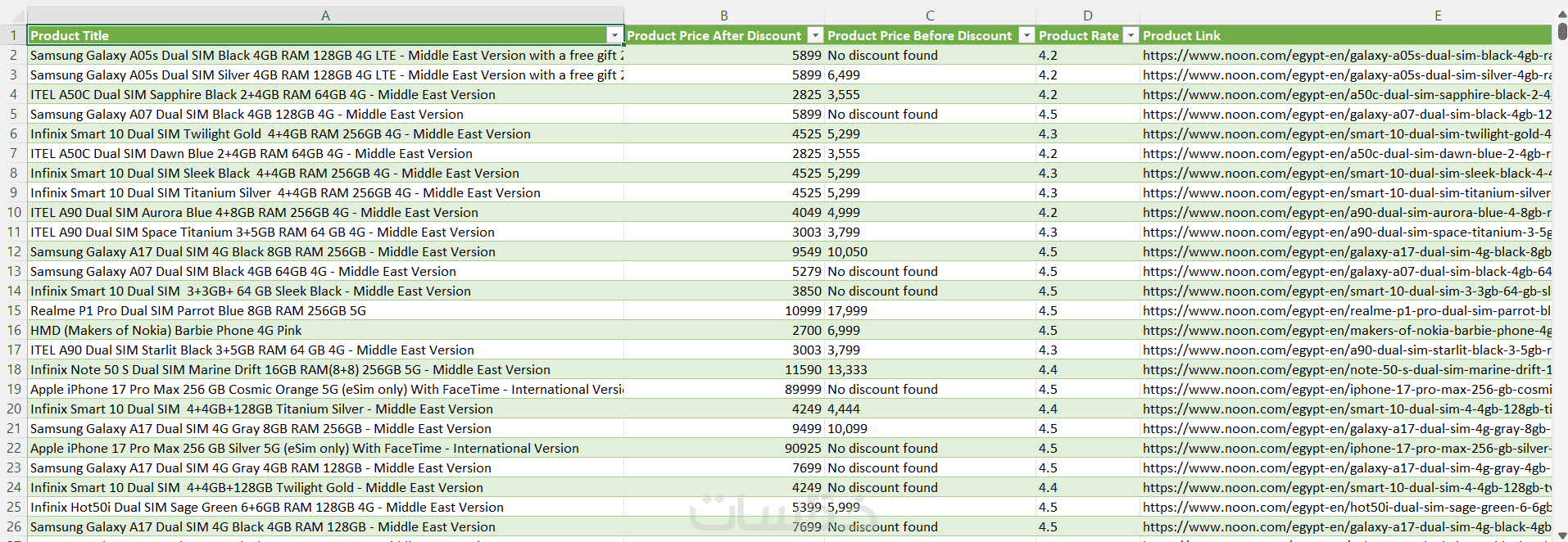 ستحصل على ملف يحتوي على جميع البيانات المستخرجة من الموقع بشكل منظم، ويمكن تسليمه بصيغ مختلفة مثل Excel أو CSV أو JSON حسب طلبك.