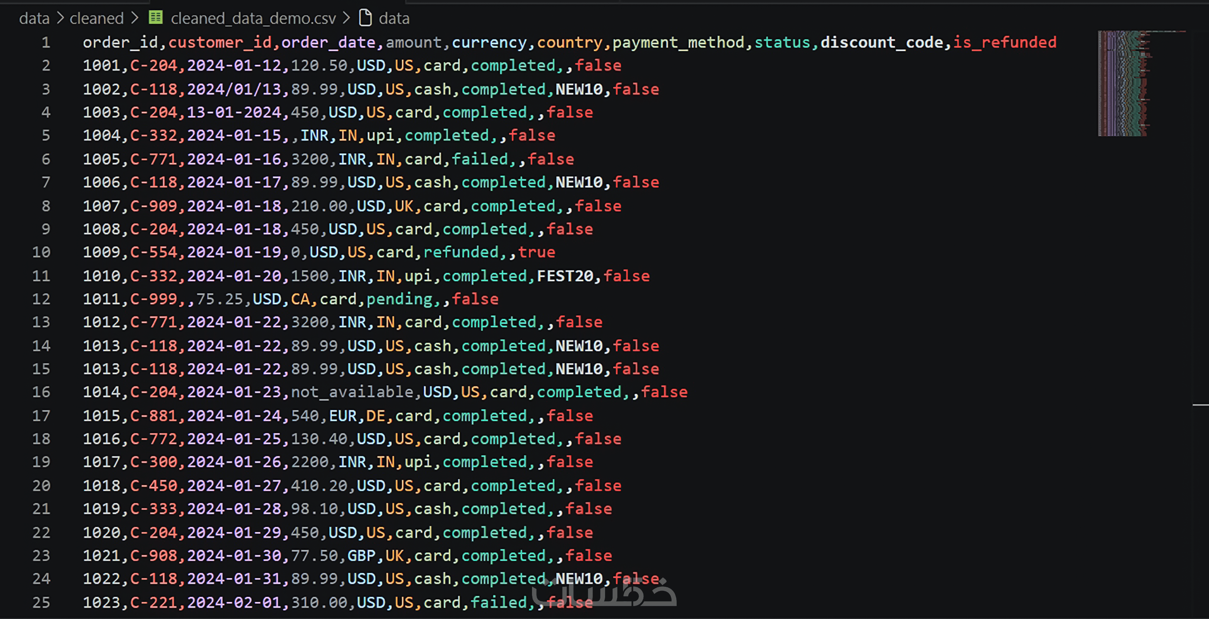 معالجة القيم المفقودة والمكررة وتحسين جودة البيانات لتصبح جاهزة مباشرة للتحليل.