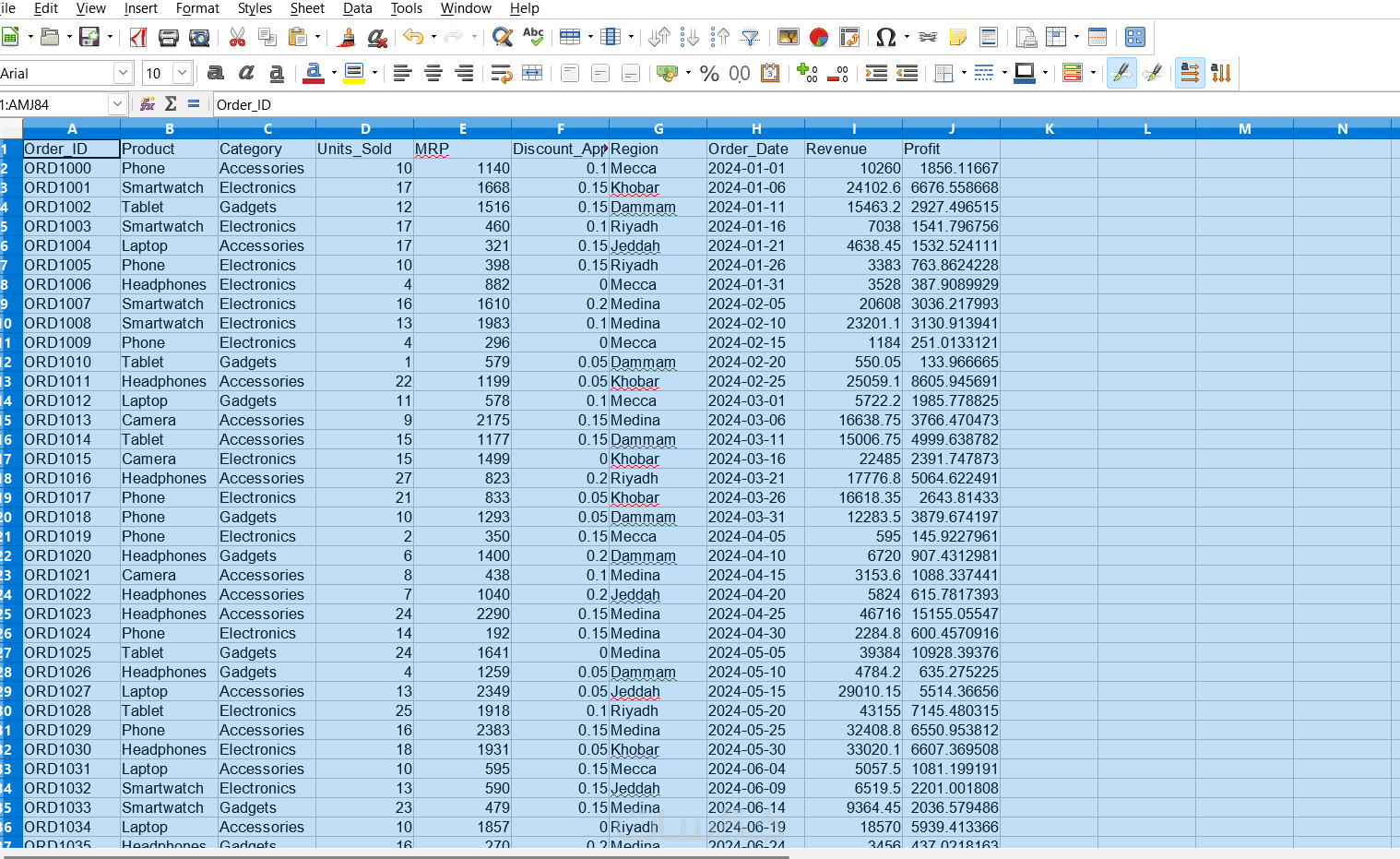 ملف Excel أو CSV يحتوي على البيانات المطلوبة بشكل منسق ومنظّم