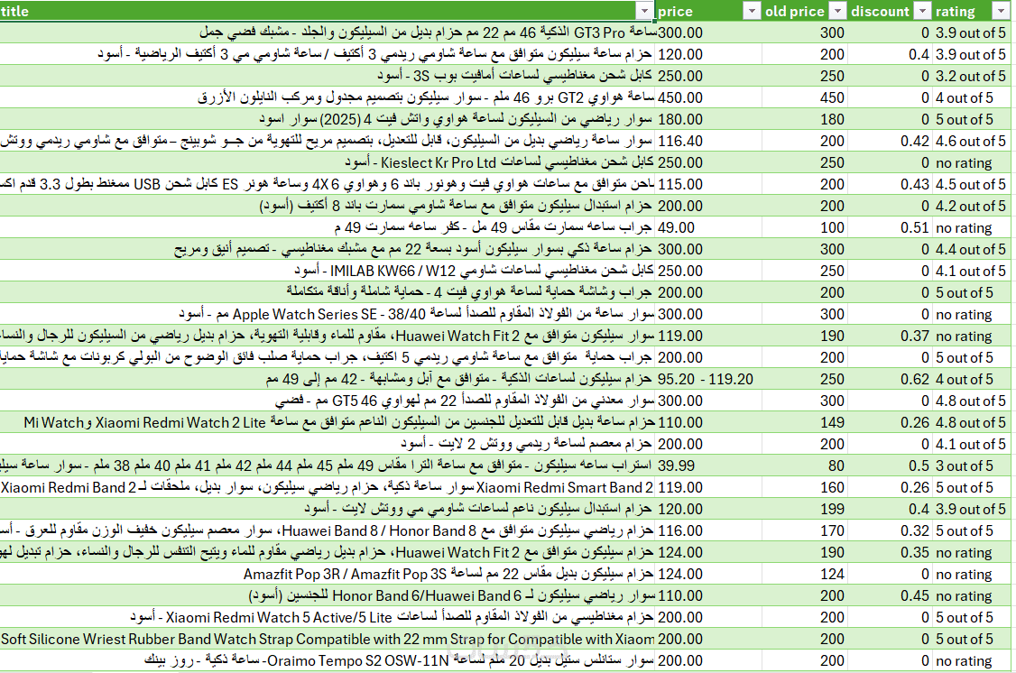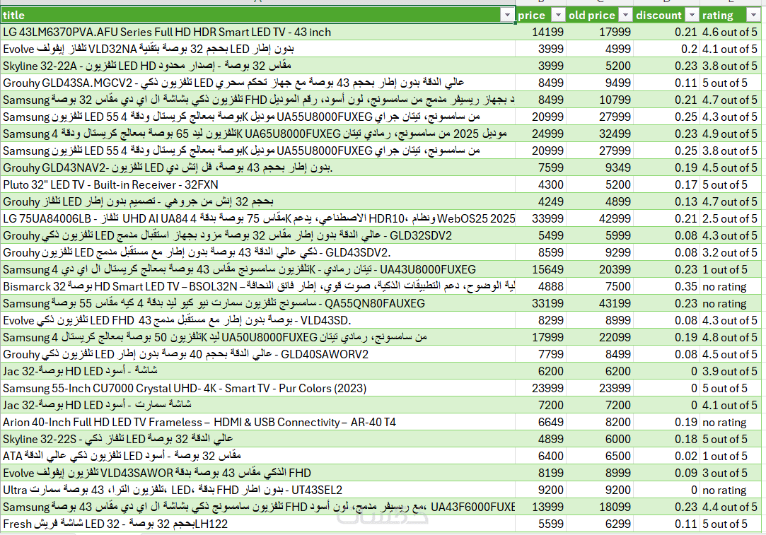 ملف منظم يحتوي على البيانات التي تم استخراجها من الموقع.