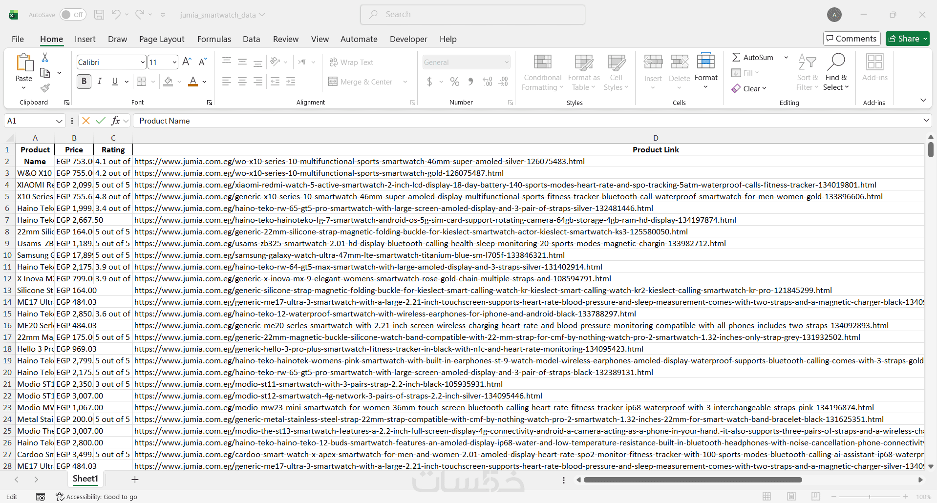 ملف Excel أو CSV منظم وجاهز للاستخدام.