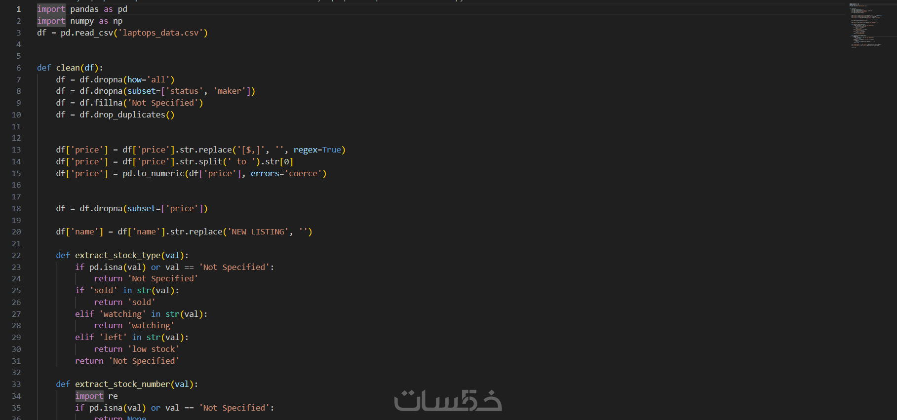 إزالة التكرار، معالجة القيم الناقصة، وتحويلها لجدول جاهز للاستخدام.