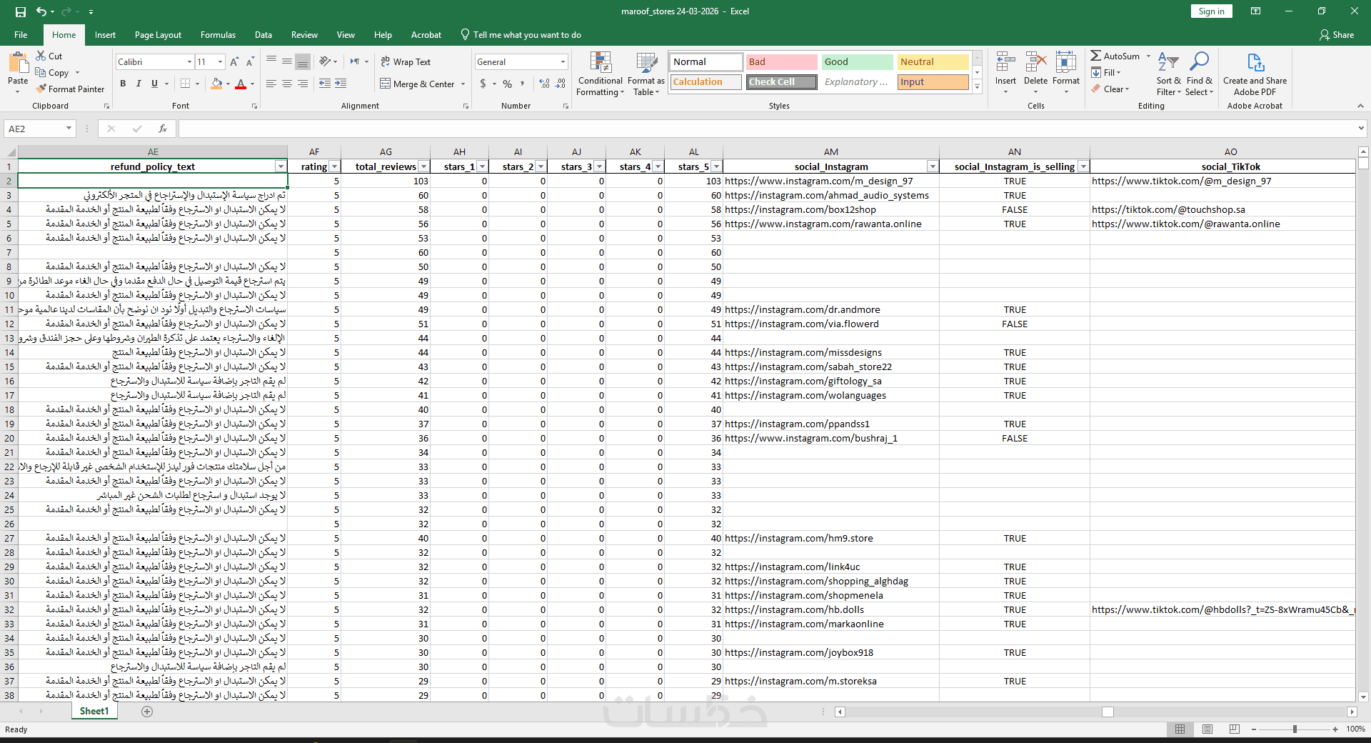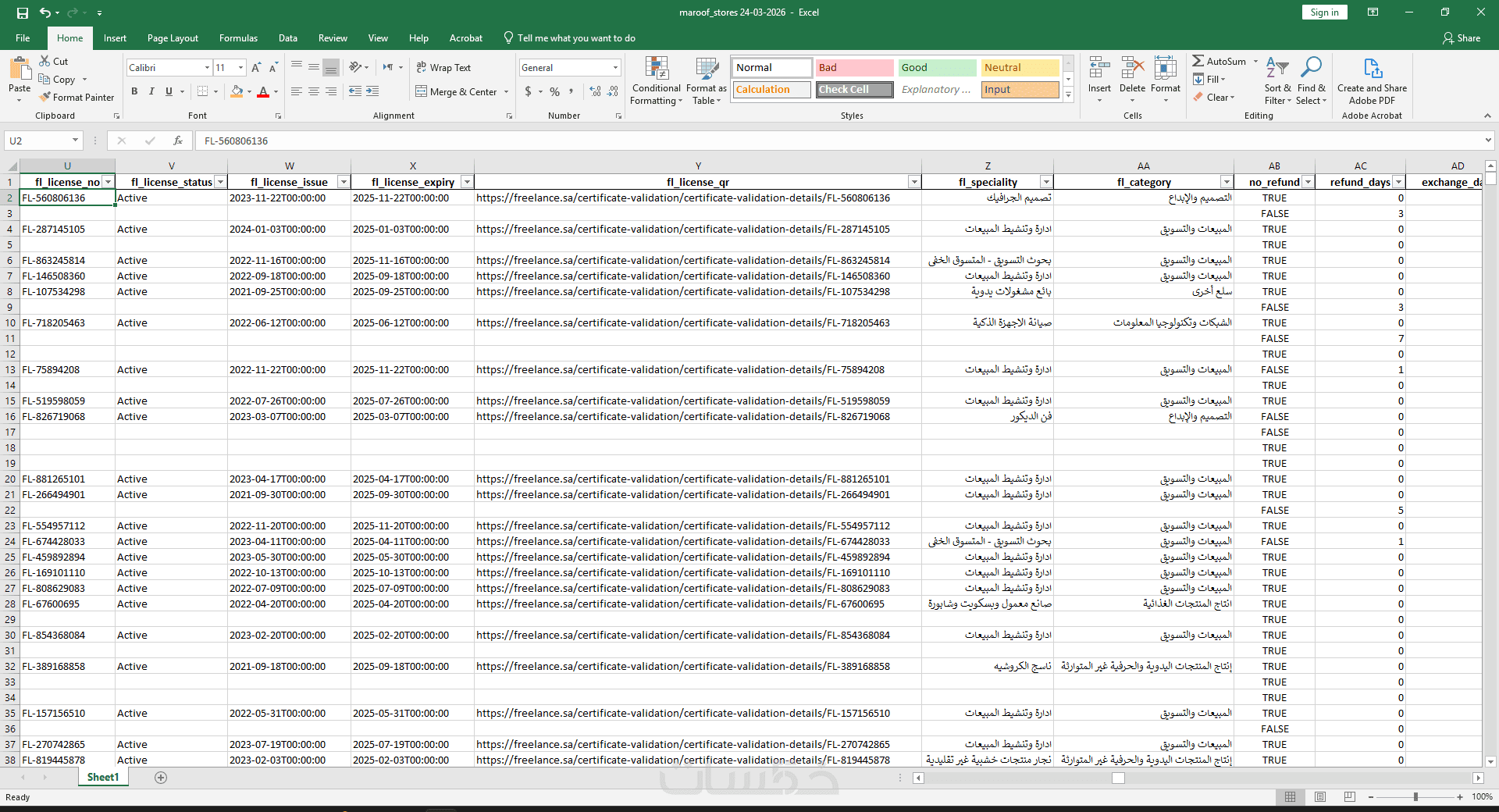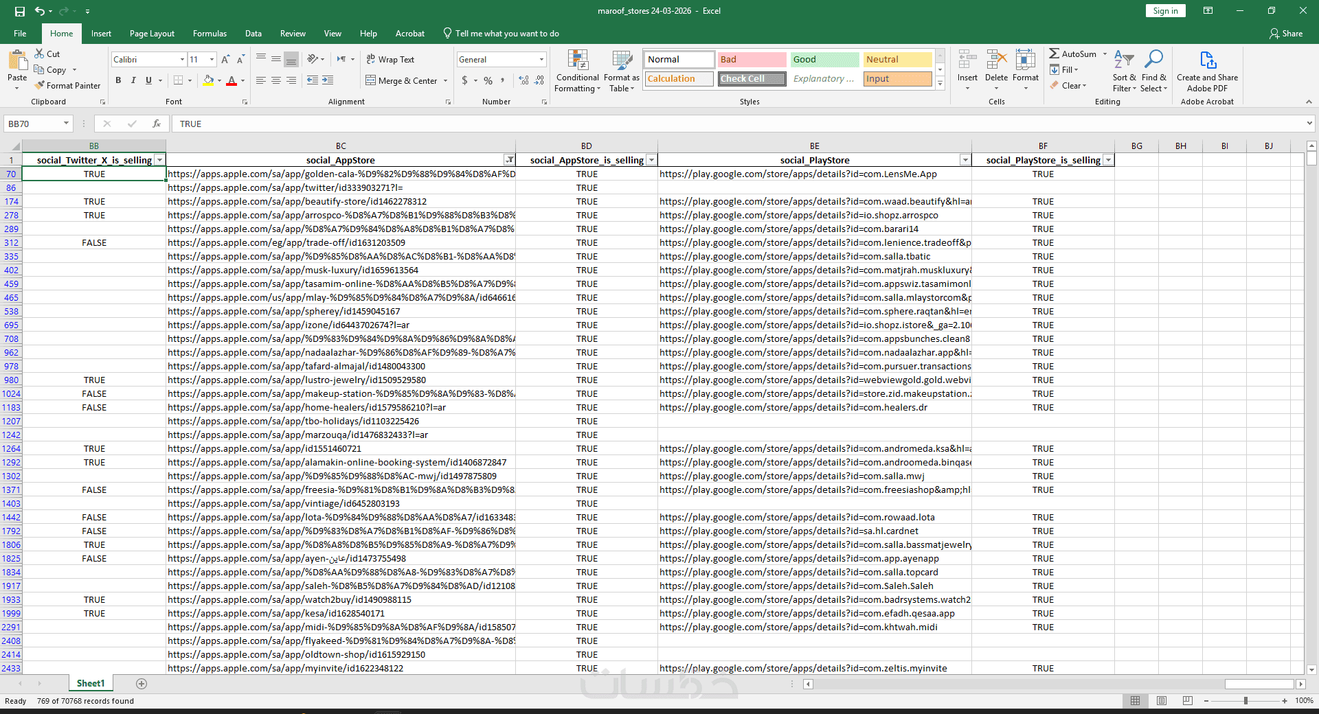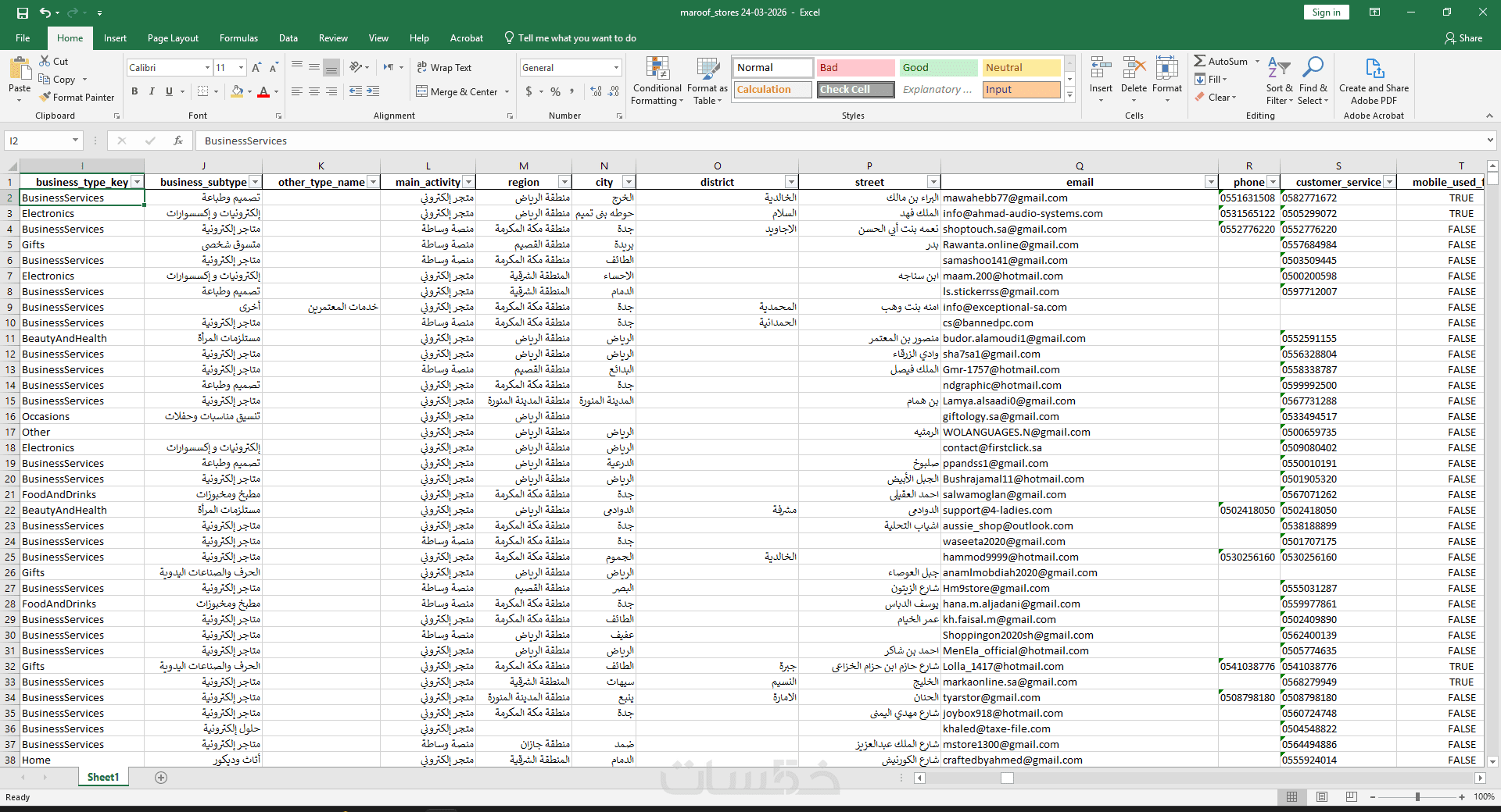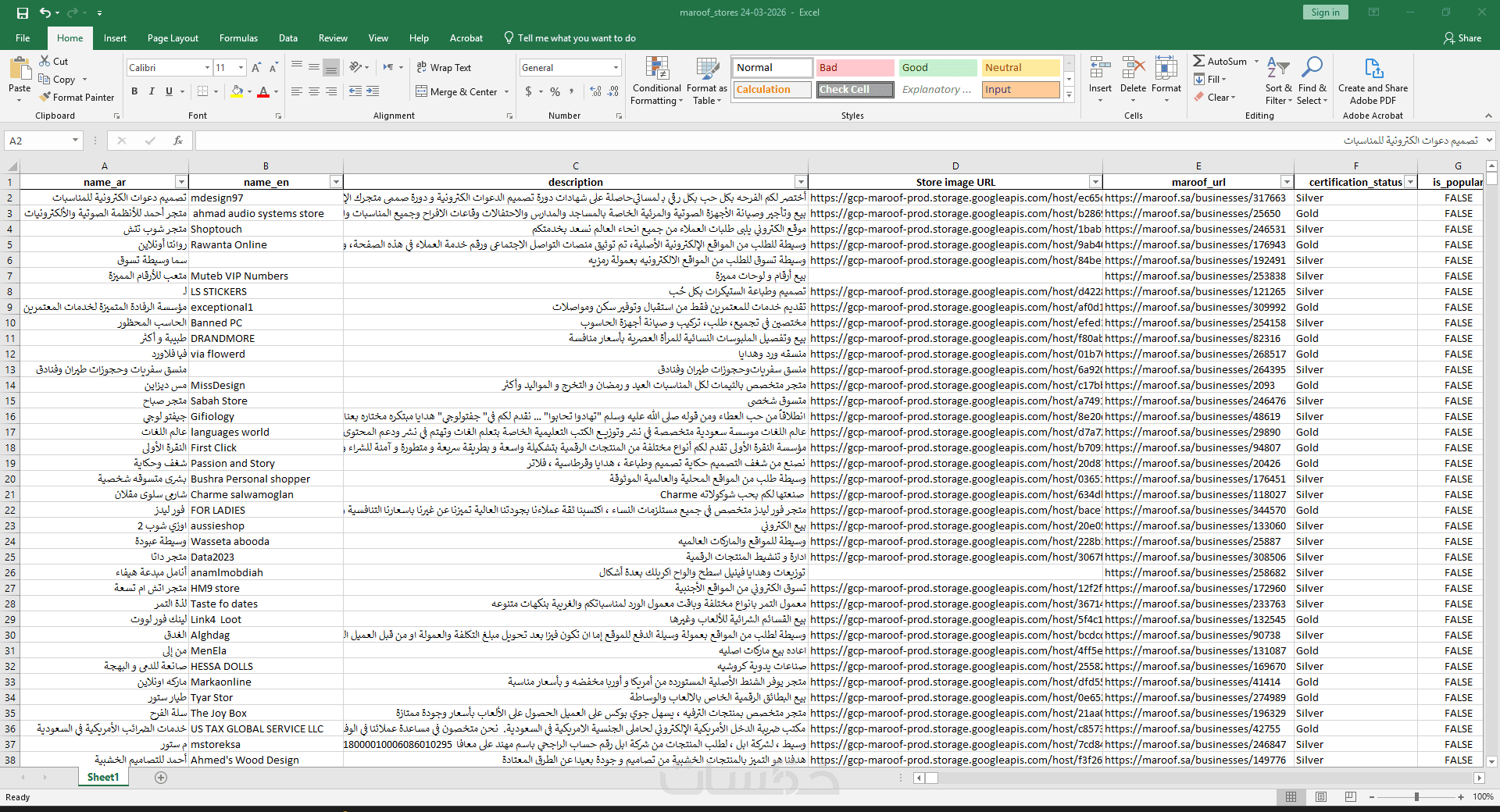 أقدم لك ملف Excel يحتوي على بيانات 70,846 متجر من على منصة معروف.