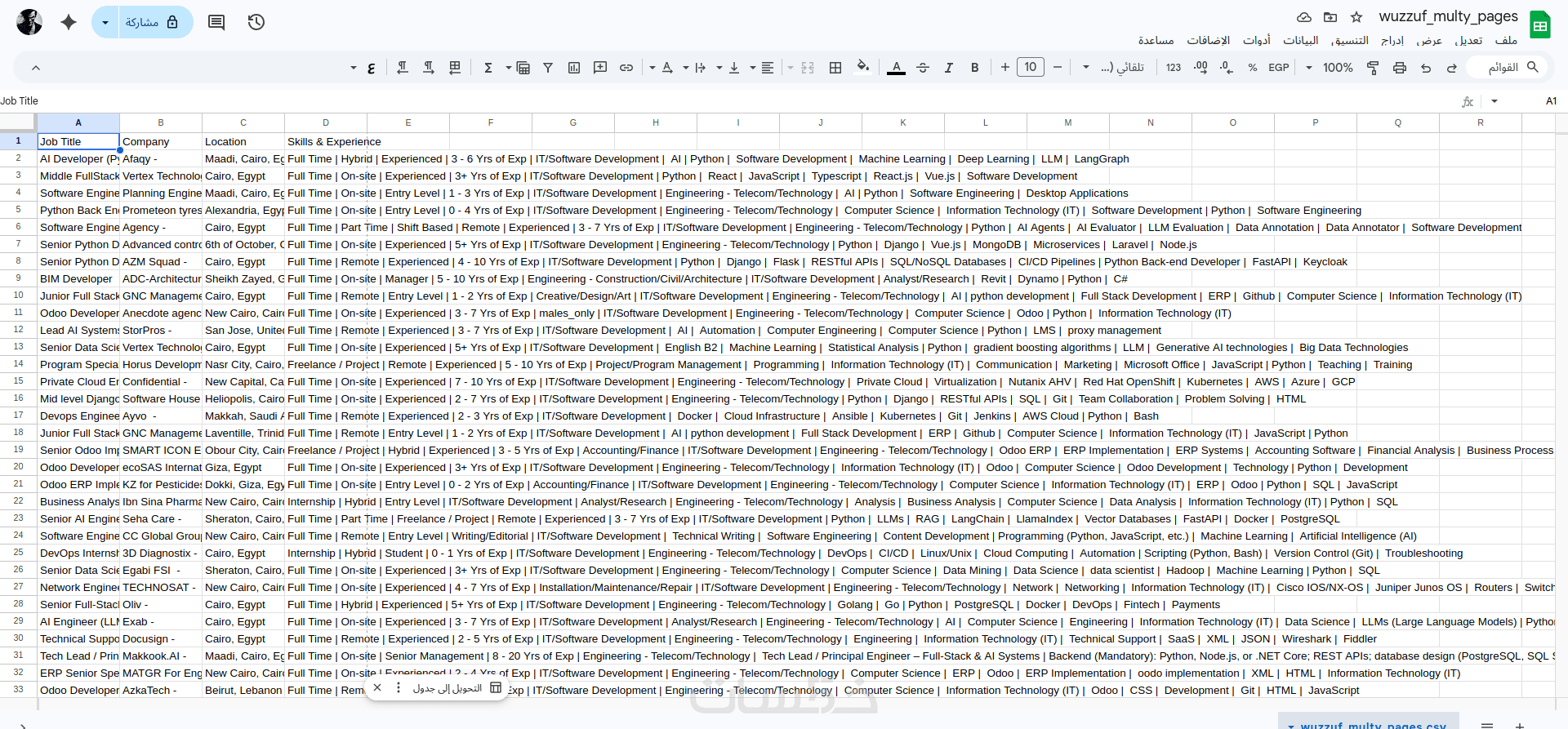تنسيق ملف csv-json-Excel مرتب وجاهز للاستخدام الفوري.