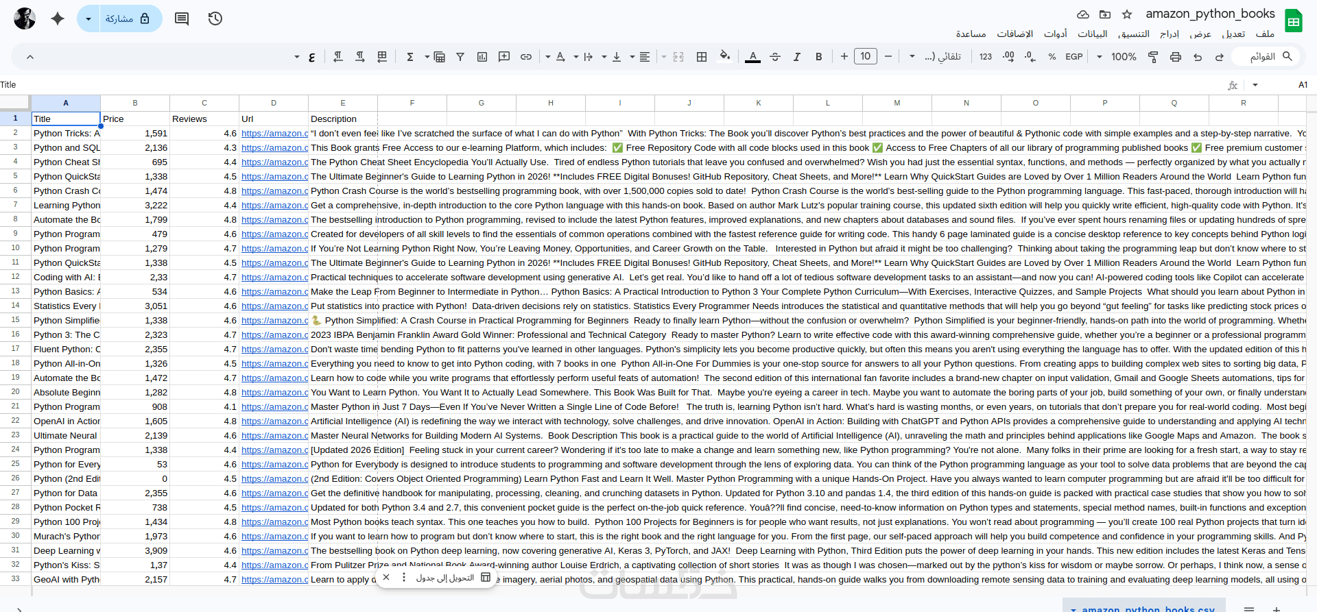تشمل البيانات: الاسم، السعر، الوصف، الروابط، وصور المنتجات.