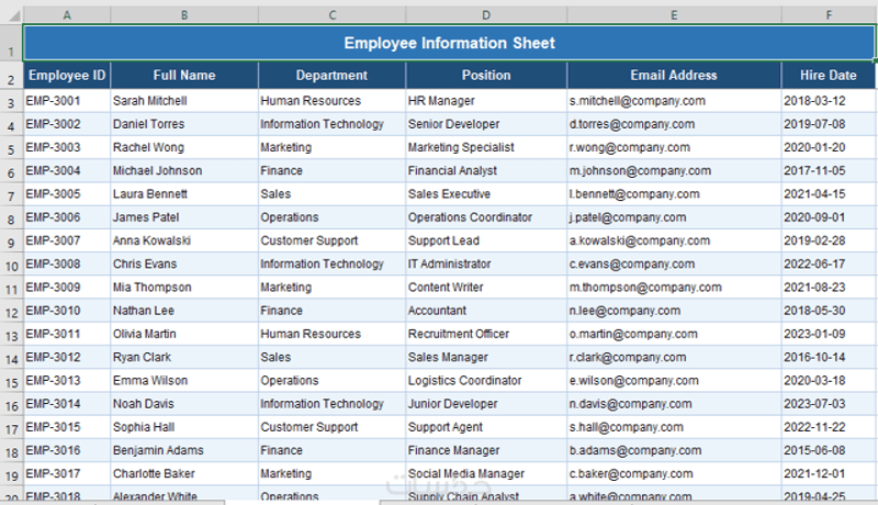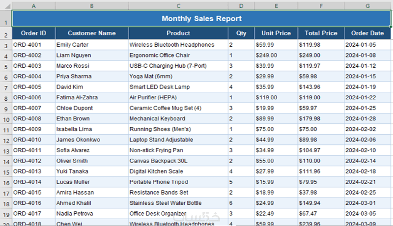 يتم ترتيب البيانات داخل جداول واضحة لتكون جاهزة للاستخدام.