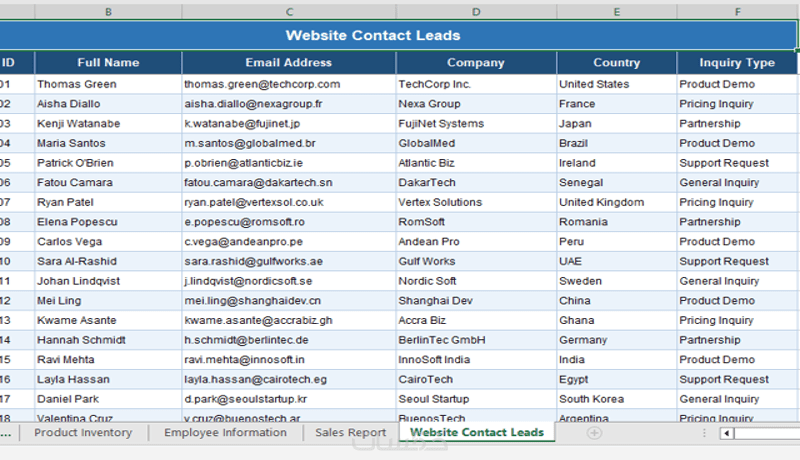 أقوم بجمع البيانات المطلوبة من الموقع وتنظيمها بشكل واضح داخل ملف Excel.