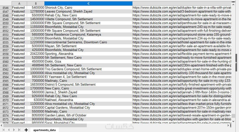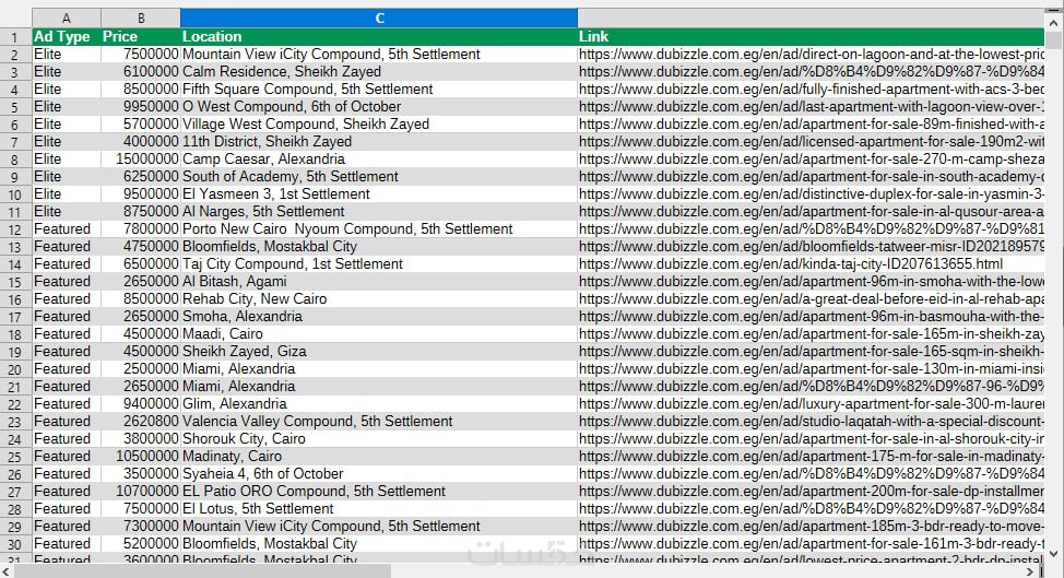 ملف بيانات منظم يحتوي على كافة المعلومات المستخرجة.