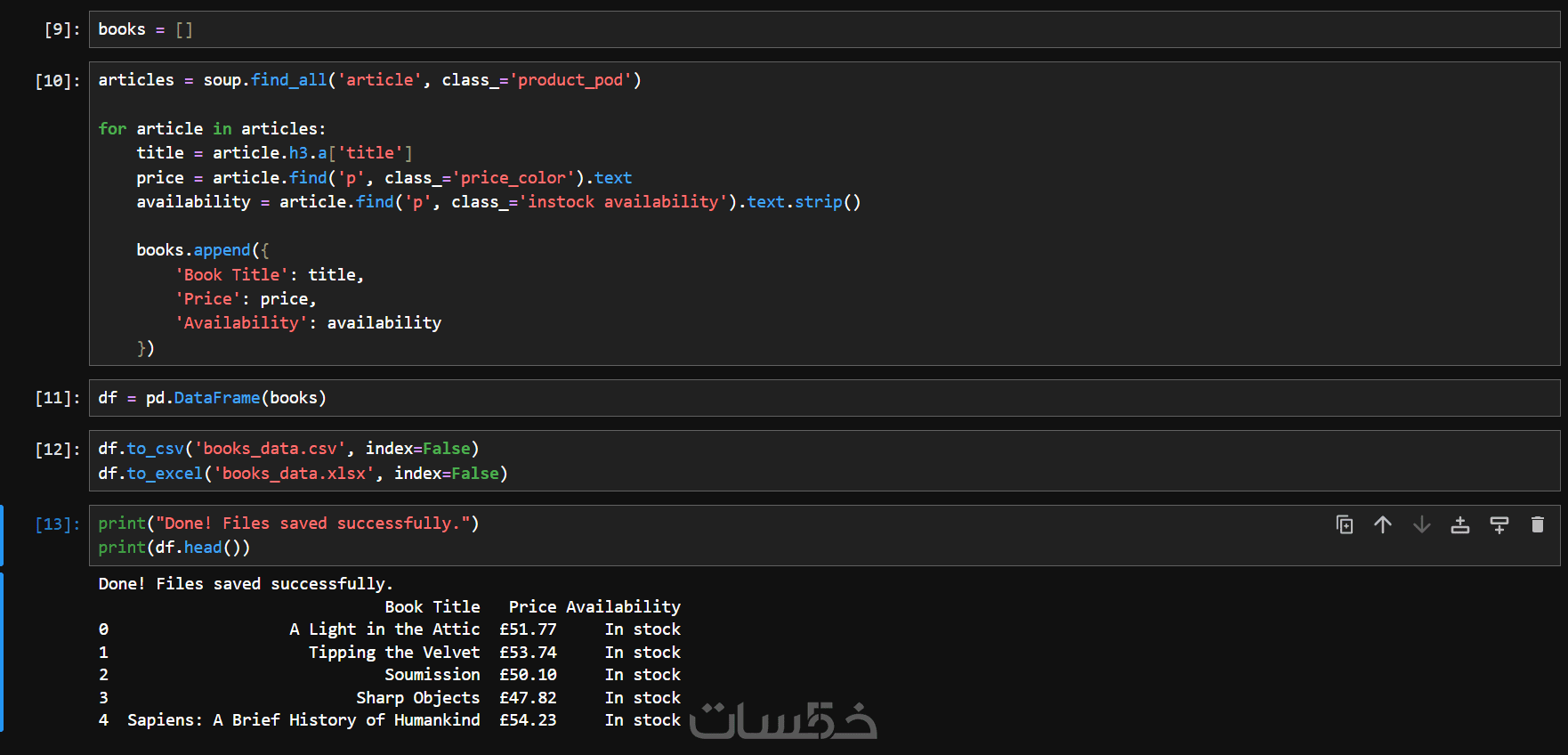 إذا كان الاتفاق يتضمن الكود، ستستلم سكريبت بايثون مكتوب بشكل منظم ومفهوم يمكنك إعادة تشغيله لاحقاً لاستخراج بيانات جديدة.