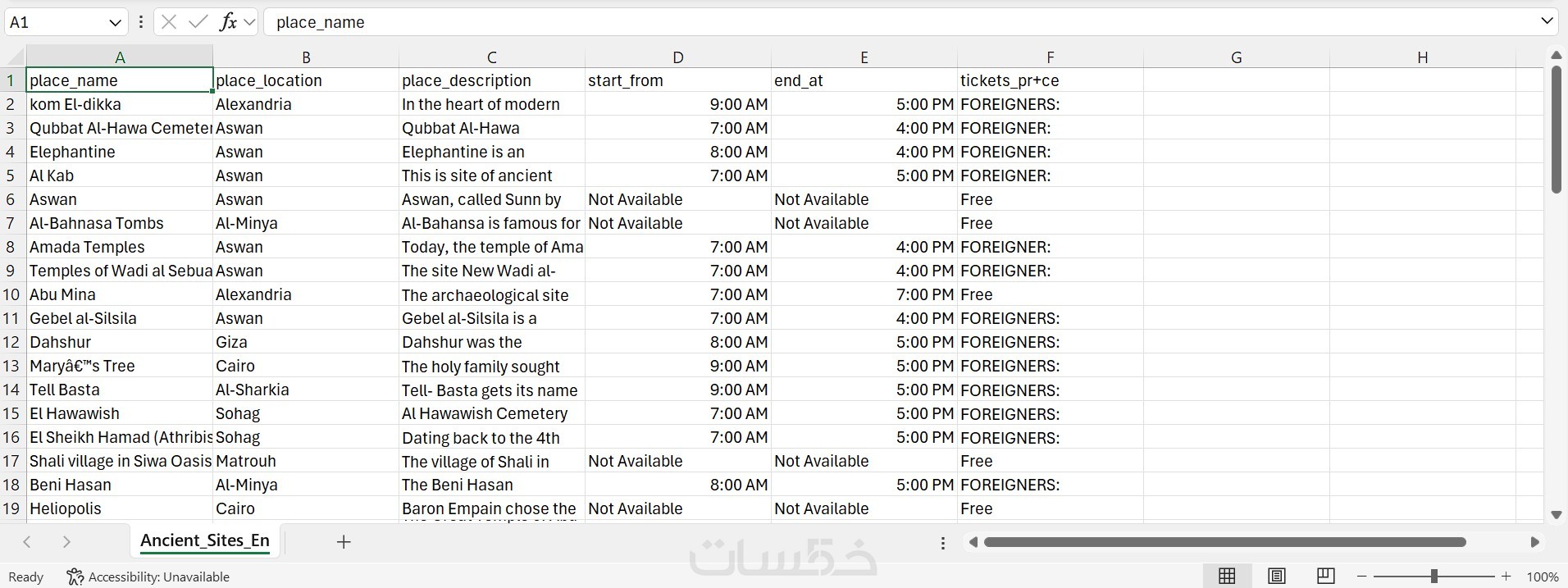 2) تسليم البيانات في ملف Excel أو CSV منسق ومرتب.
