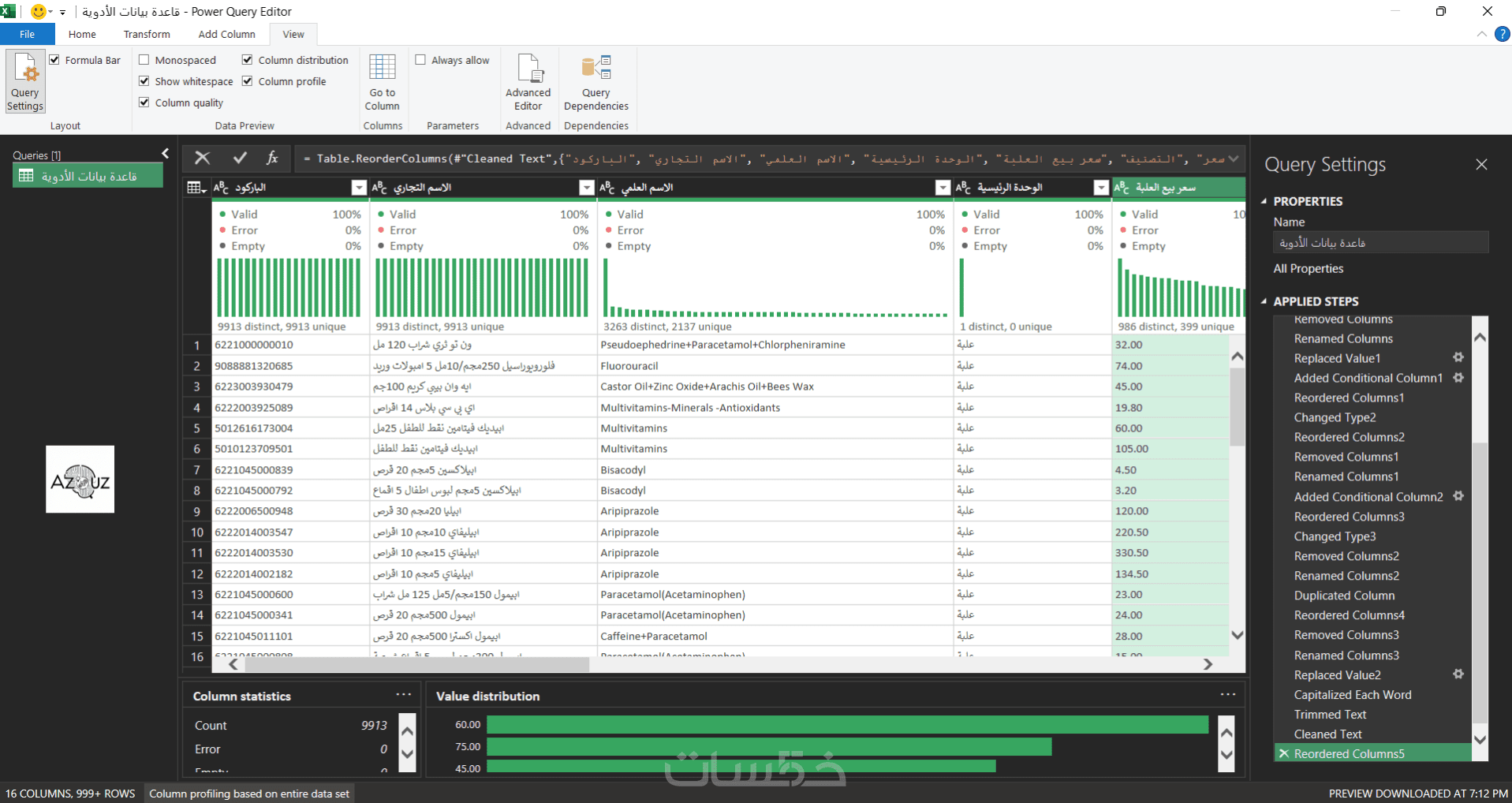 مسح البيانات المكررة، إصلاح الأخطاء، وتوحيد شكل الأرقام والنصوص.