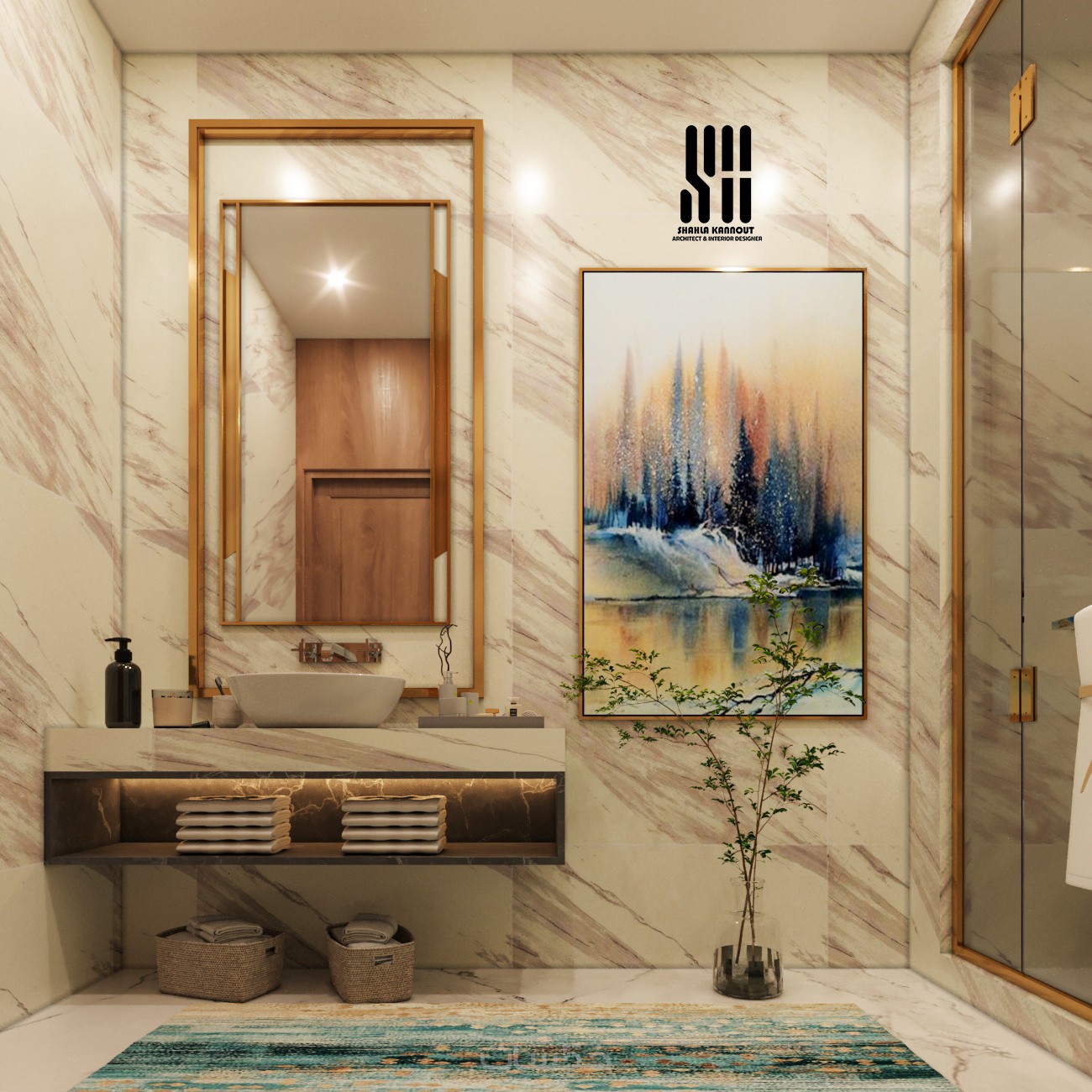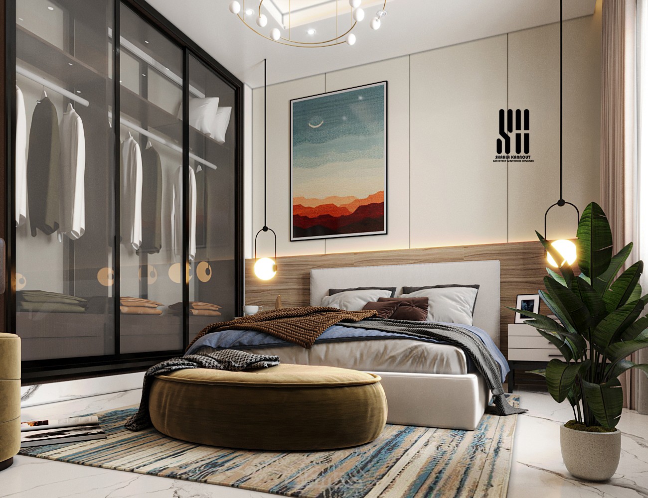 توزيع مثالي للاثاث والأجهزة لتحقيق أقصى استفادة من المساحة مع ابراز عنصر الجمالية