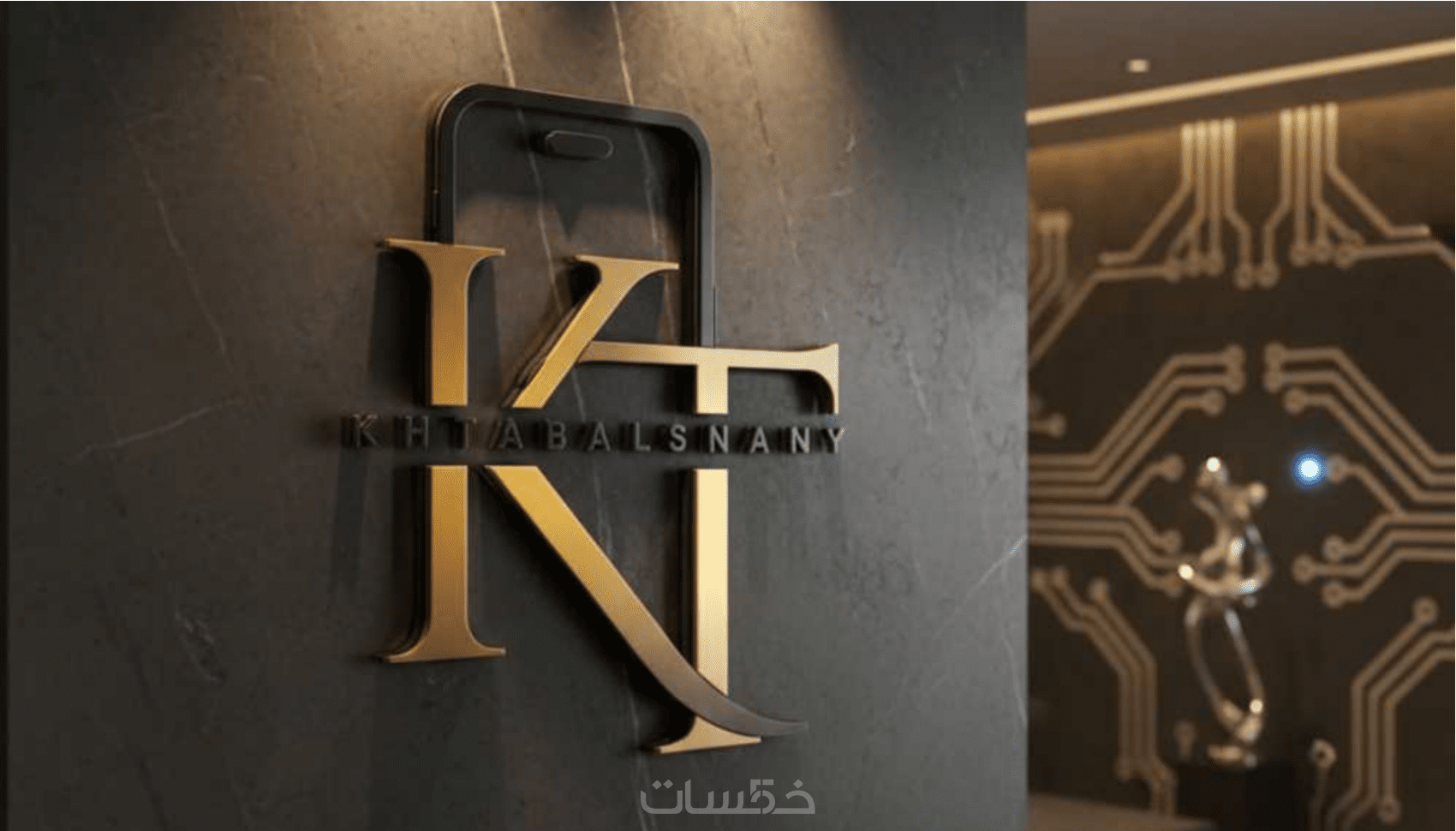 تصميم Mockup: تطبيق الشعار 3D على واجهة خشبية أو رخامية عصرية (كما في النموذج).
