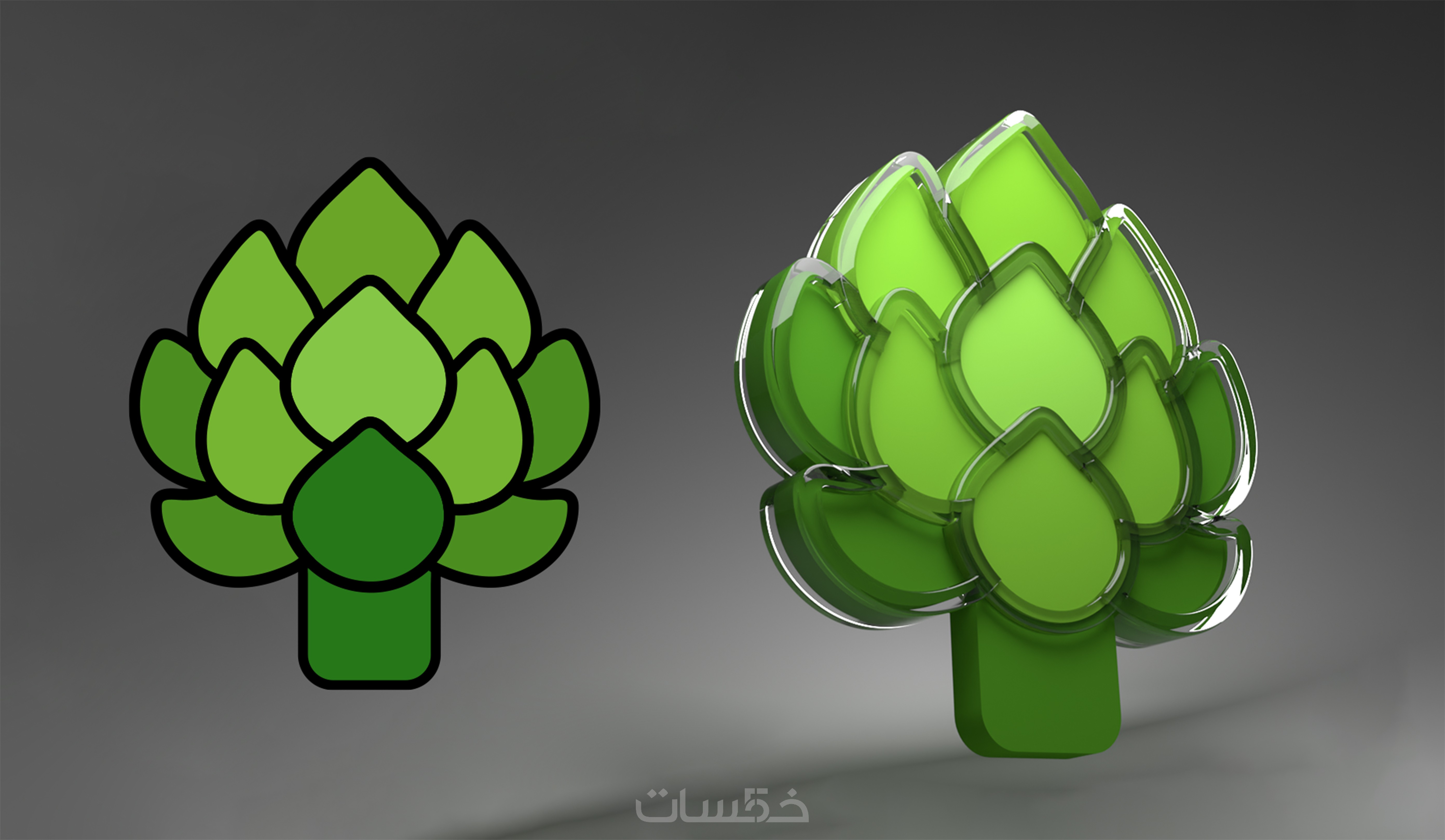 - تحويل الأيقونة أو الشعار (لوجو) من 2D إلى 3D احترافي واقعي.