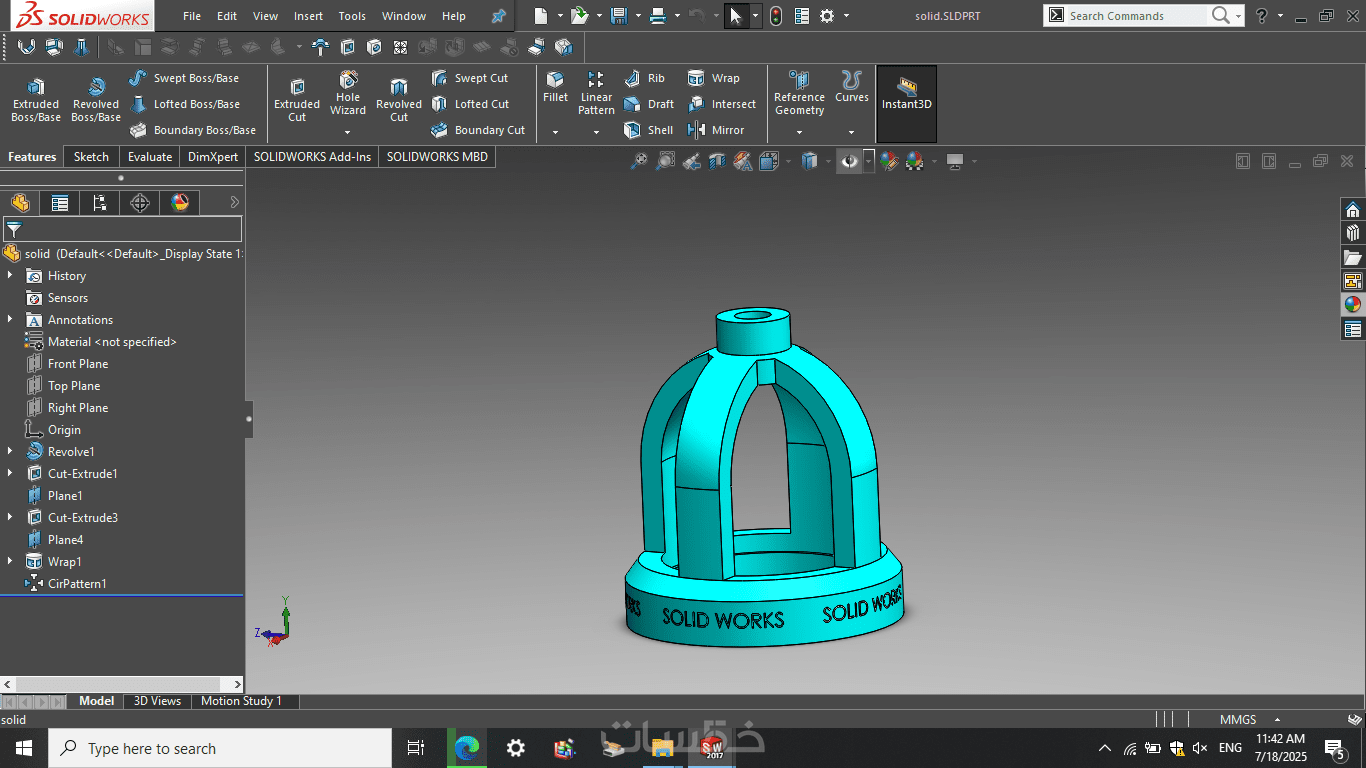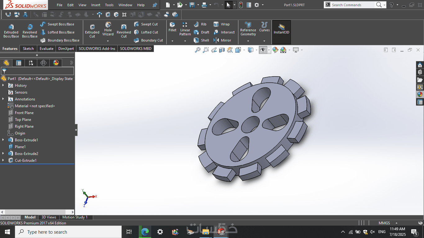 – تصميم قطعة ميكانيكية واحدة فقط ثلاثية الأبعاد باستخدام SolidWorks