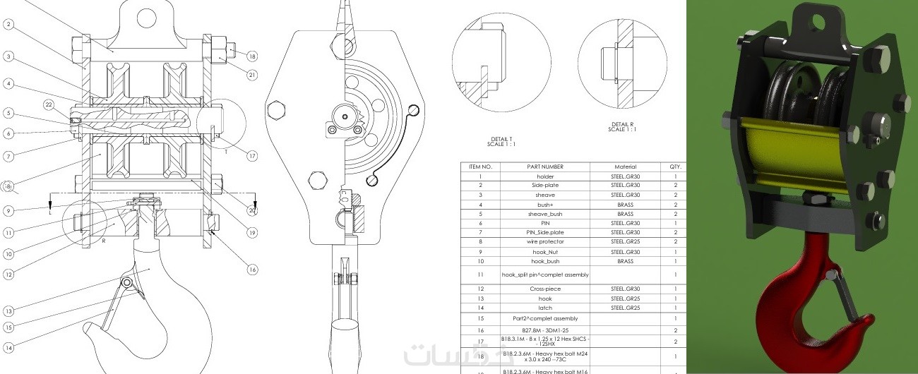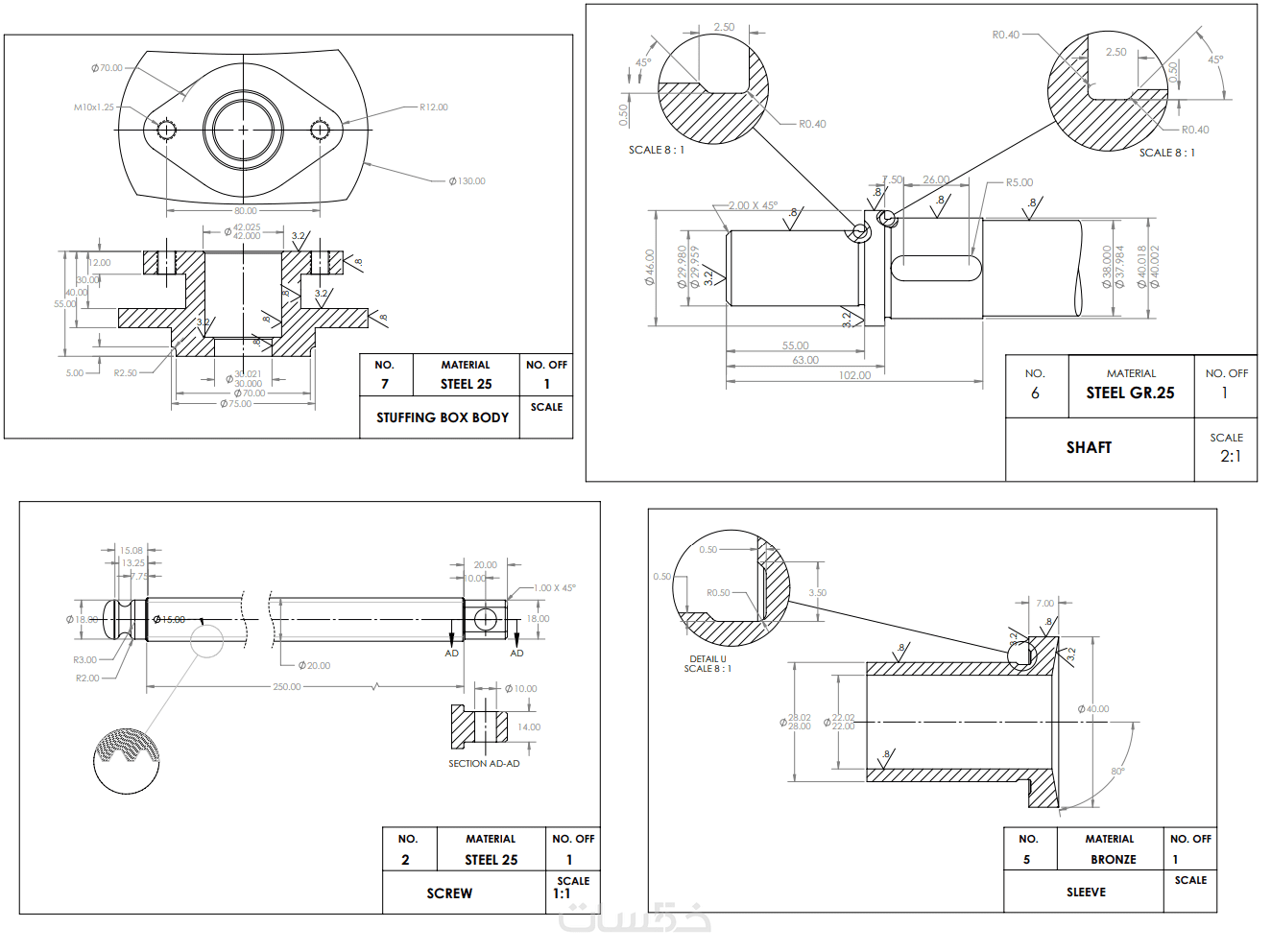 تقديم لوحه هندسيه واحده للتصنيع بالابعاد و تفاصيل المنتج.