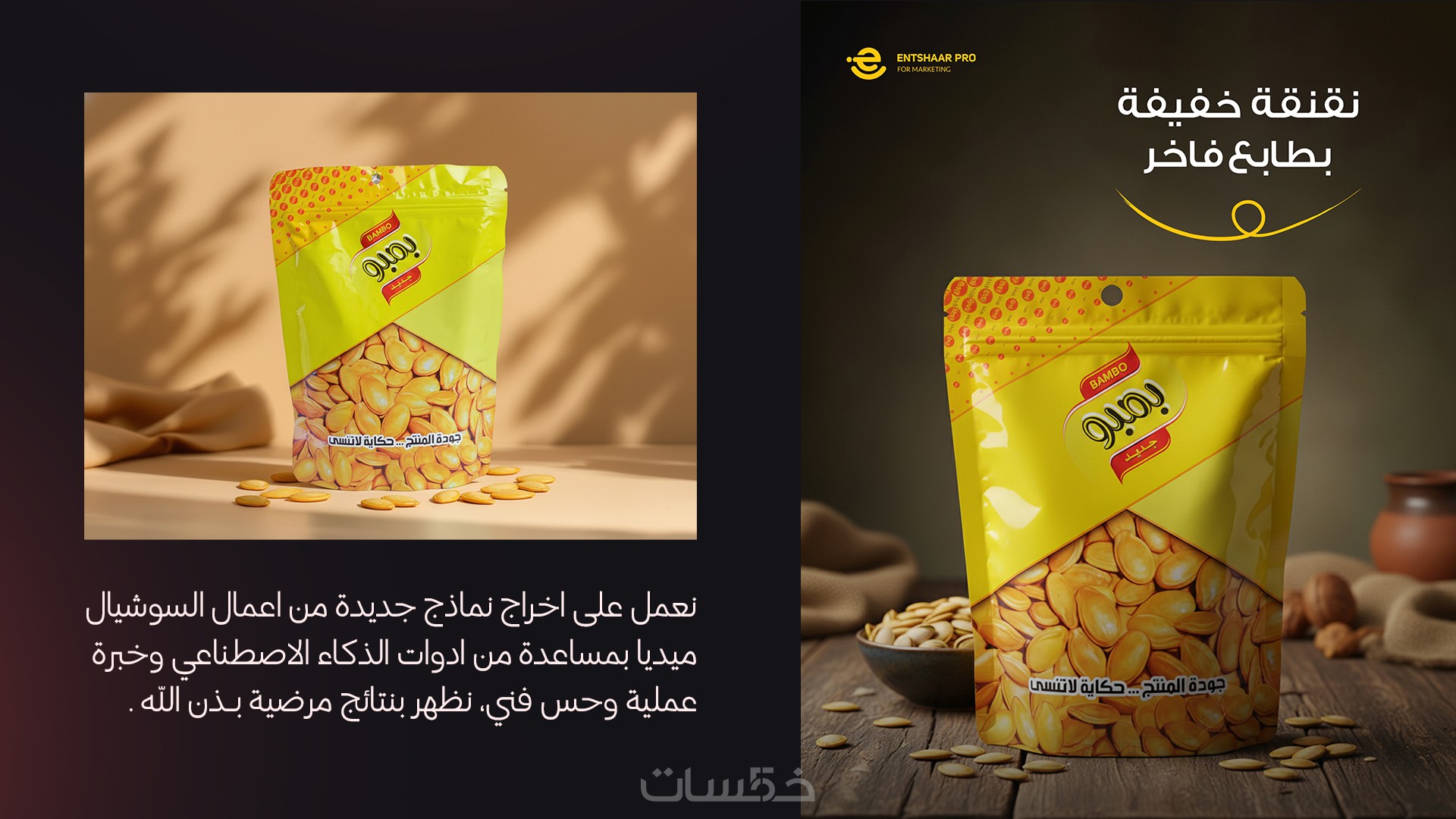 أعمل على تصميم صور عصرية ومرتبة تعكس هوية المنتج وتناسب النشر على مختلف منصات التواصل الاجتماعي.