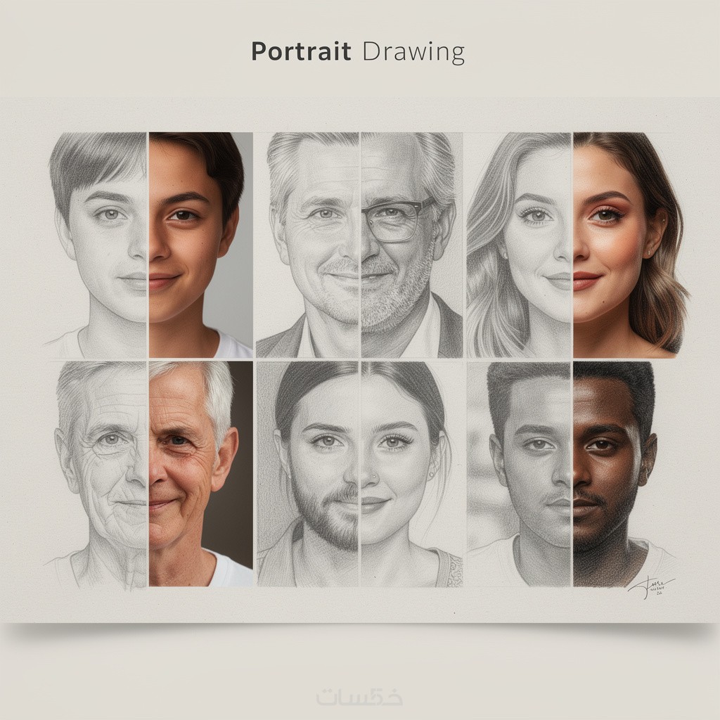 أقدّم لك خدمة رسم احترافي بالرصاص بدقة عالية ولمسة فنية واقعية تُبرز أدق التفاصيل في ملامح الوجه.