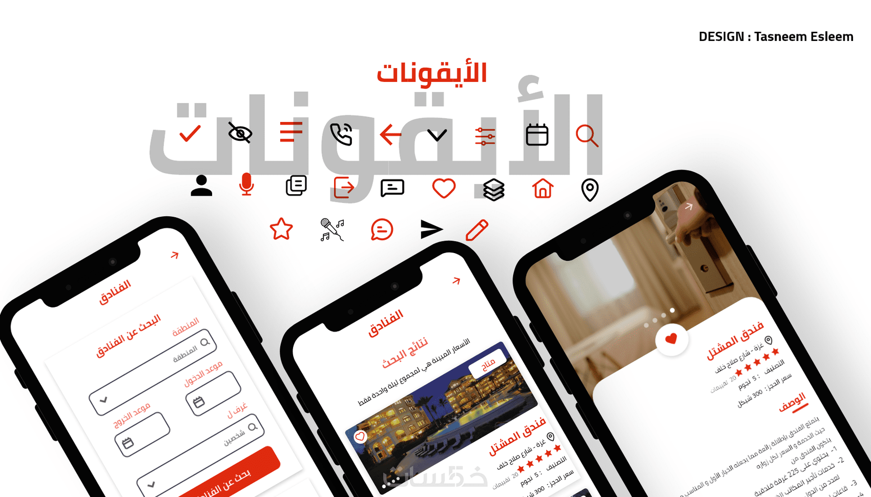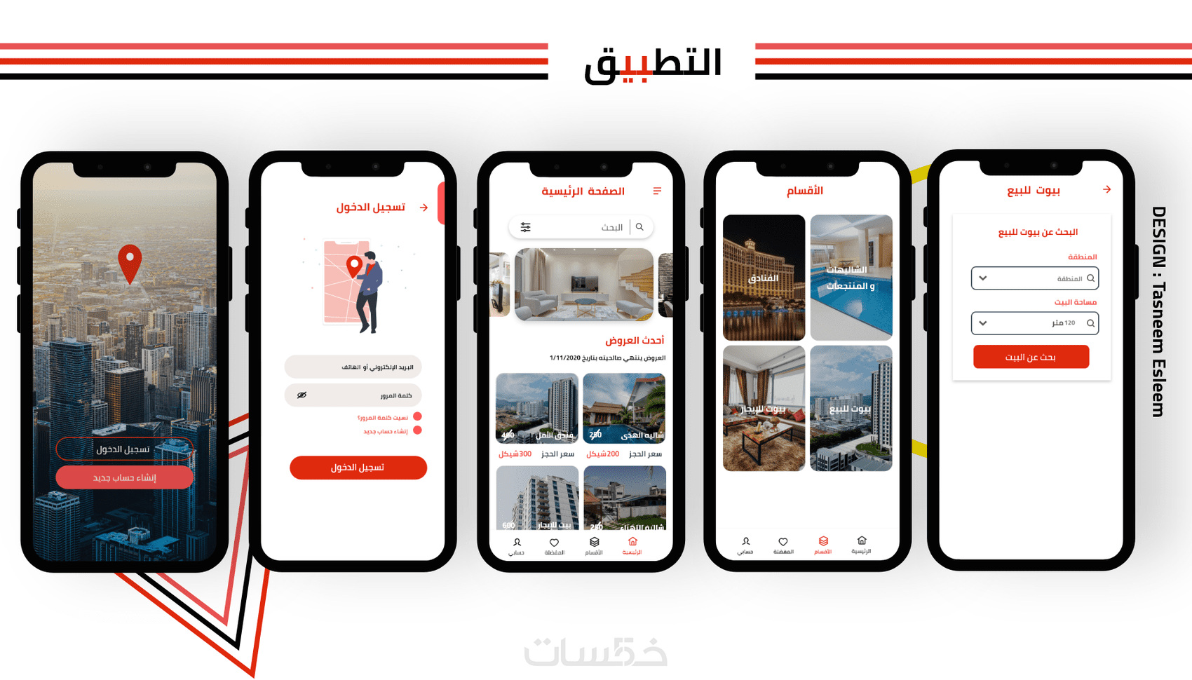 تصميم واجهات مستخدم لتطبيق حجز فنادق و شاليهات و بيع و إيجار بيوت ذات أفكار مميزة وعصرية فقط بسعر 5 دولار ليست برمجة.