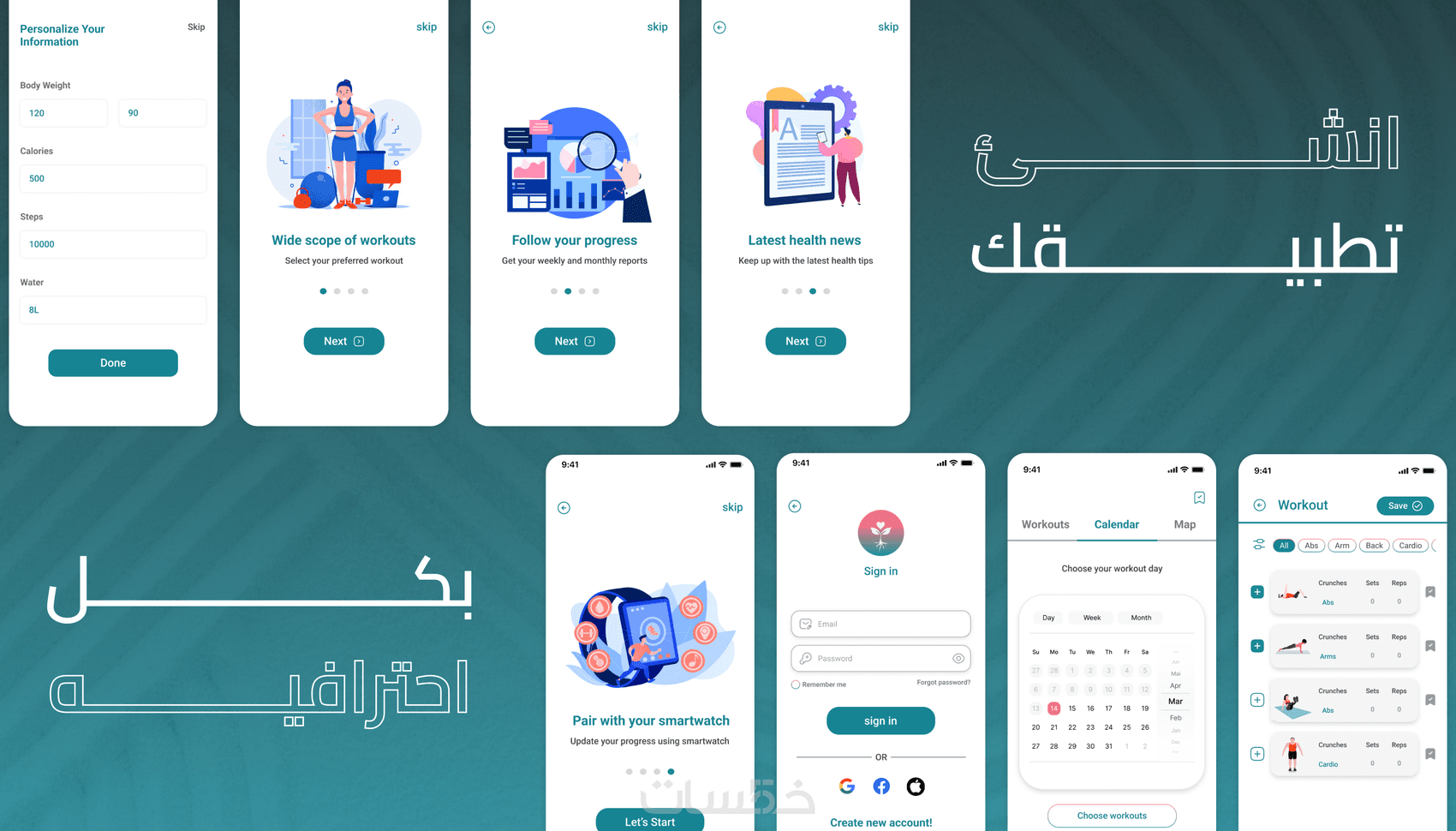 - تصميم واجهة مستخدم عصرية وجذابة لتطبيق الموبايل الخاص بك (شاشة واحدة حسب اختيارك).