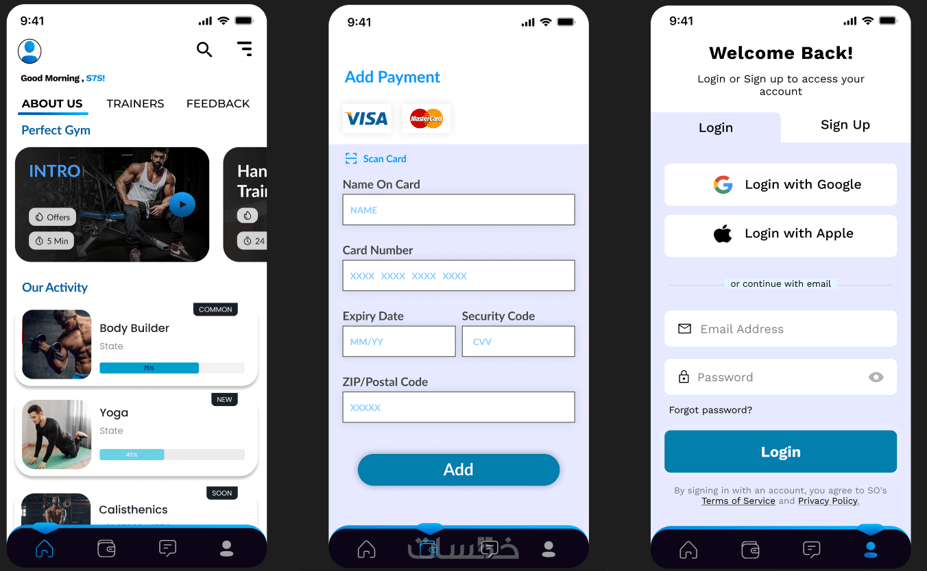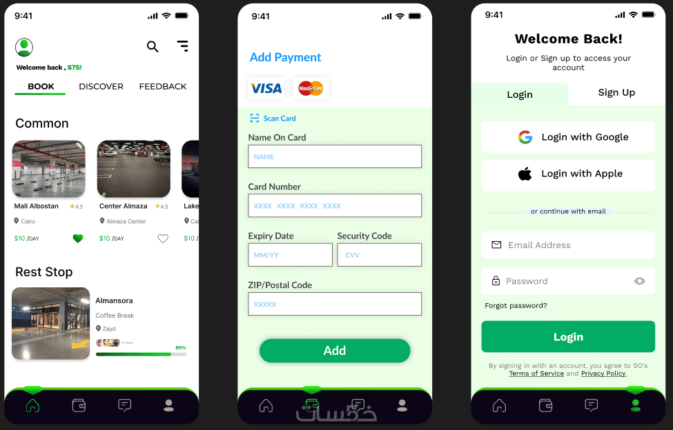 ( الصفحة الرئيسية - صفحة تسجيل الدخول - صفحة الدفع )