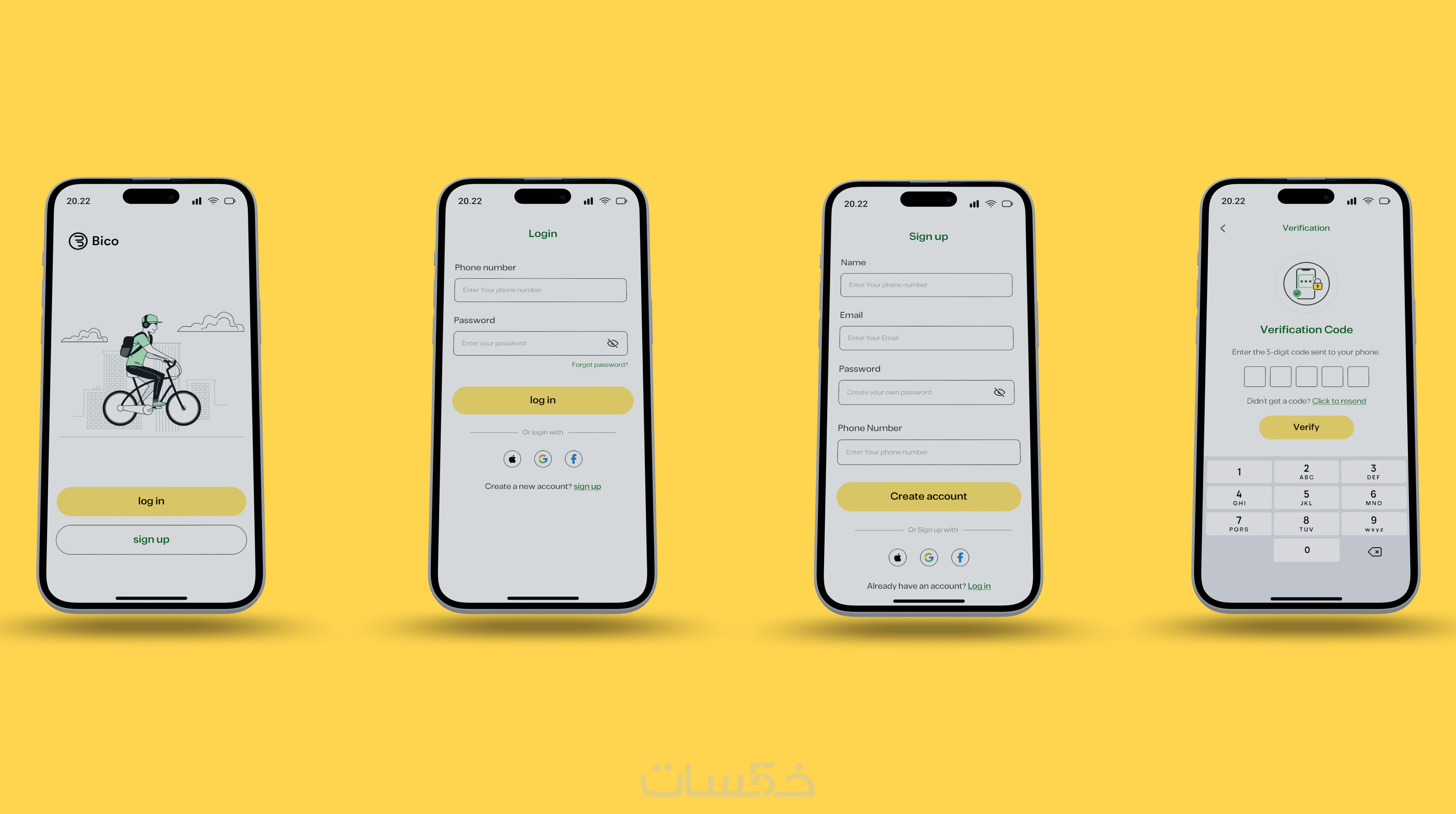 إمكانية اختيار نوع الشاشات بحرية (Home – Onboarding – Login...).
