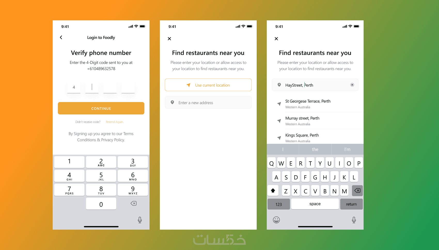 نموذج تفاعلي يوضح طريقة التنقل بين الشاشات (عند الطلب).