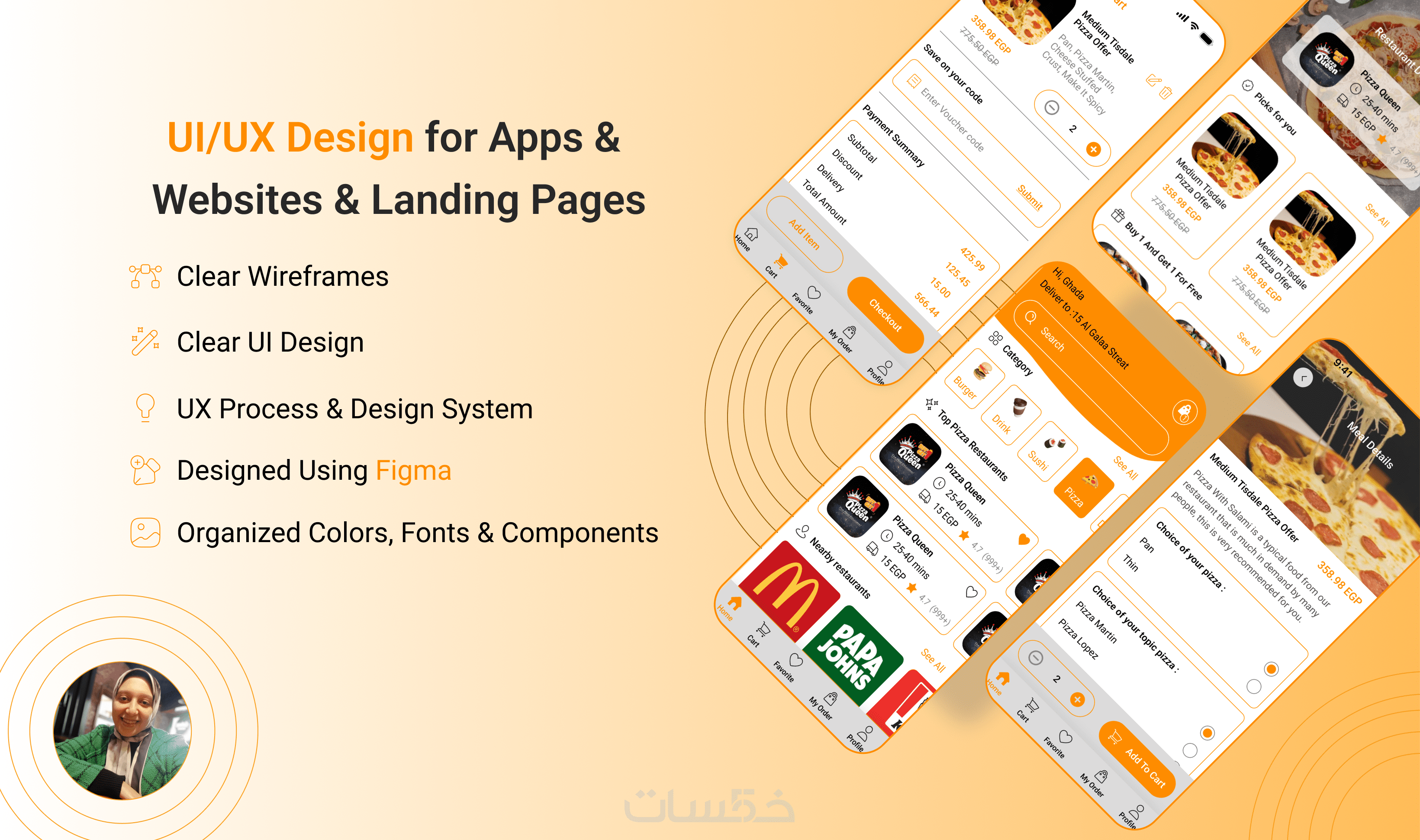 اقدم تصميم UI/UX كامل مع تسليم ملف Figma مفصل يشمل الألوان والخطوط والايقونات ومكتبة المكونات مع سرعة ودقة عالية في التنفيذ ابدأ دائما بـ Wireframes مبدئية لمناقشة أي تعديلات قبل التصميم النهائي مما يقلل الحاجة للتعديلات ويوفر الوقت كما أضمن الحفاظ على خصوصية المشروع وأفكار العميل طوال عملية التصميم
