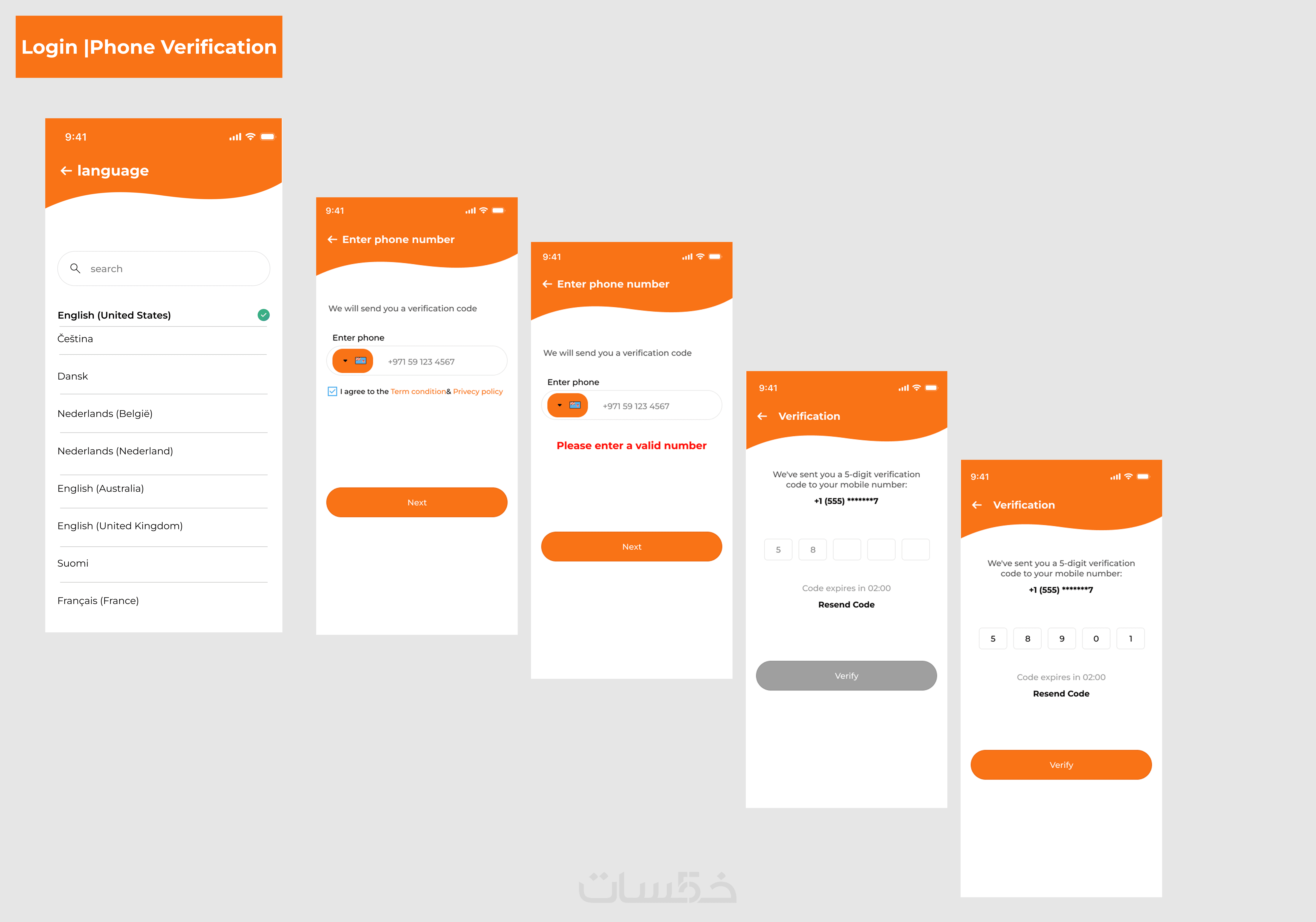 نظام التحقق والتسجيل: تصميم واجهات متكاملة لعملية الدخول والتحقق عبر الهاتف (OTP)، مع مراعاة حالات النجاح والانتظار.