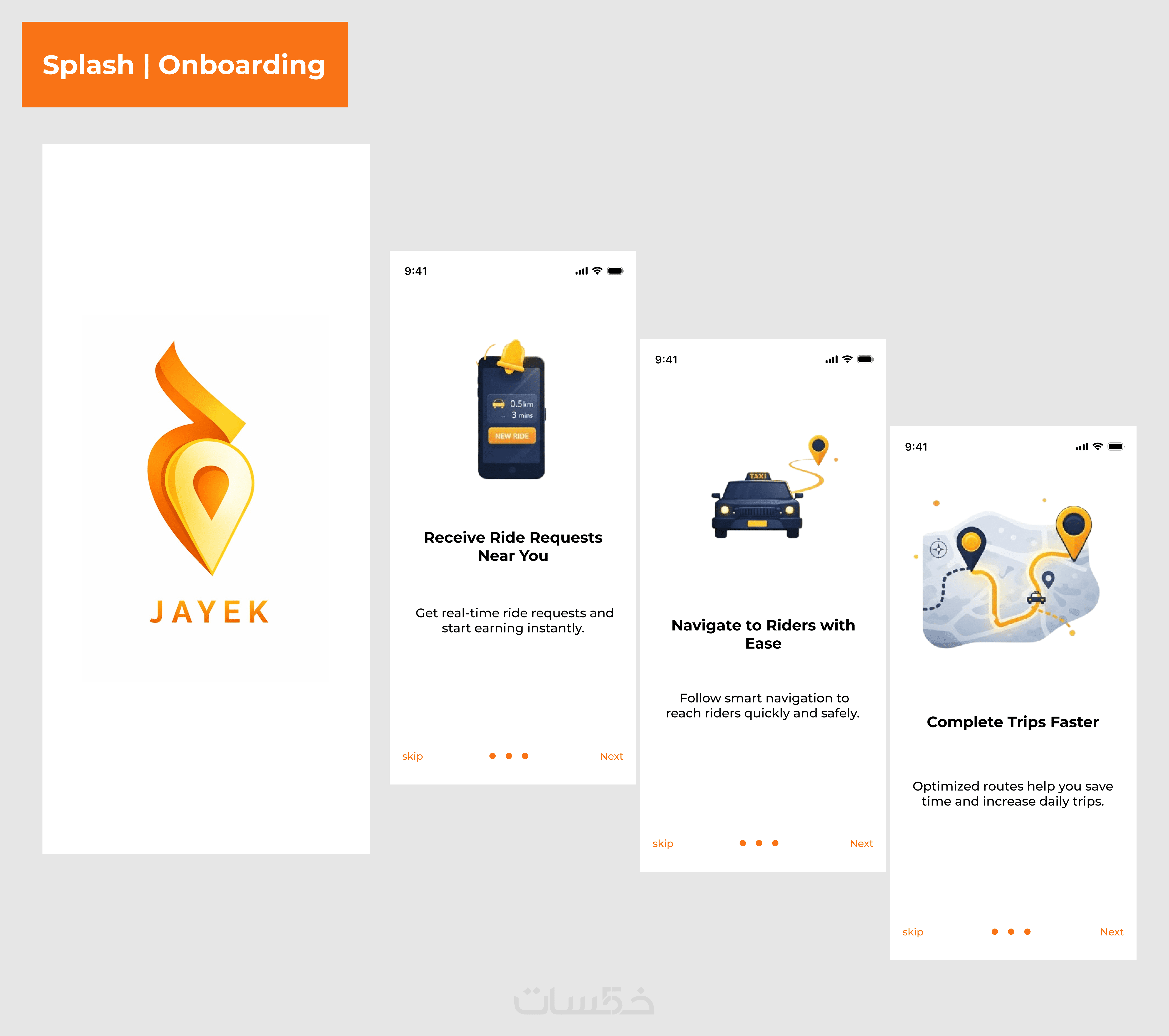 تصميم رحلة المستخدم (User Journey): إعادة هيكلة الشاشات لضمان انتقال سهل للمستخدم، بدءاً من شاشات الترحيب (Onboarding) التي تشرح مميزات التطبيق برسومات توضيحية.