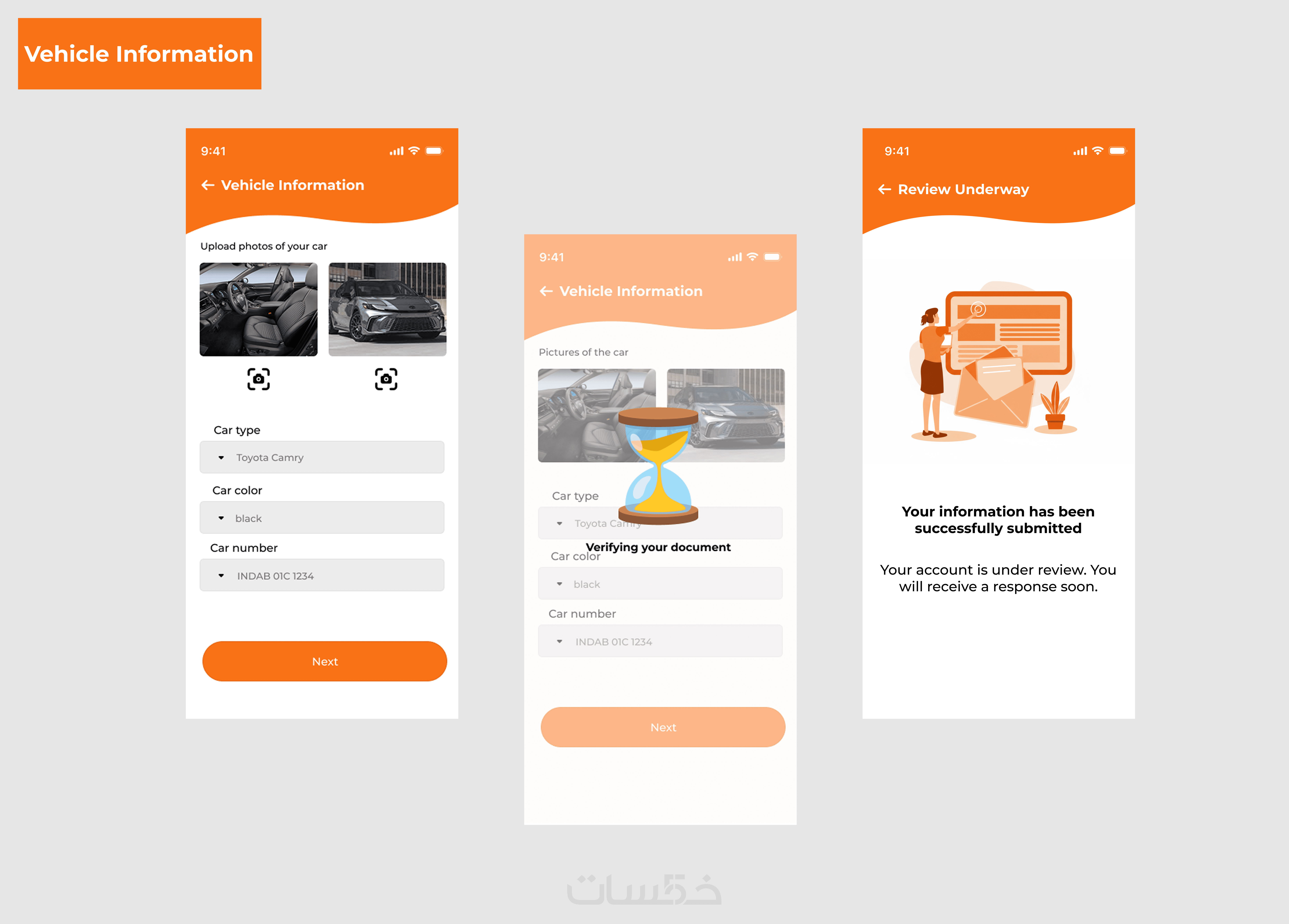 تصميم شاشات مخصصة لعمليات التحقق (OTP)، الانتظار، ومراجعة البيانات، مما يشعر المستخدم بالأمان والمتابعة اللحظية