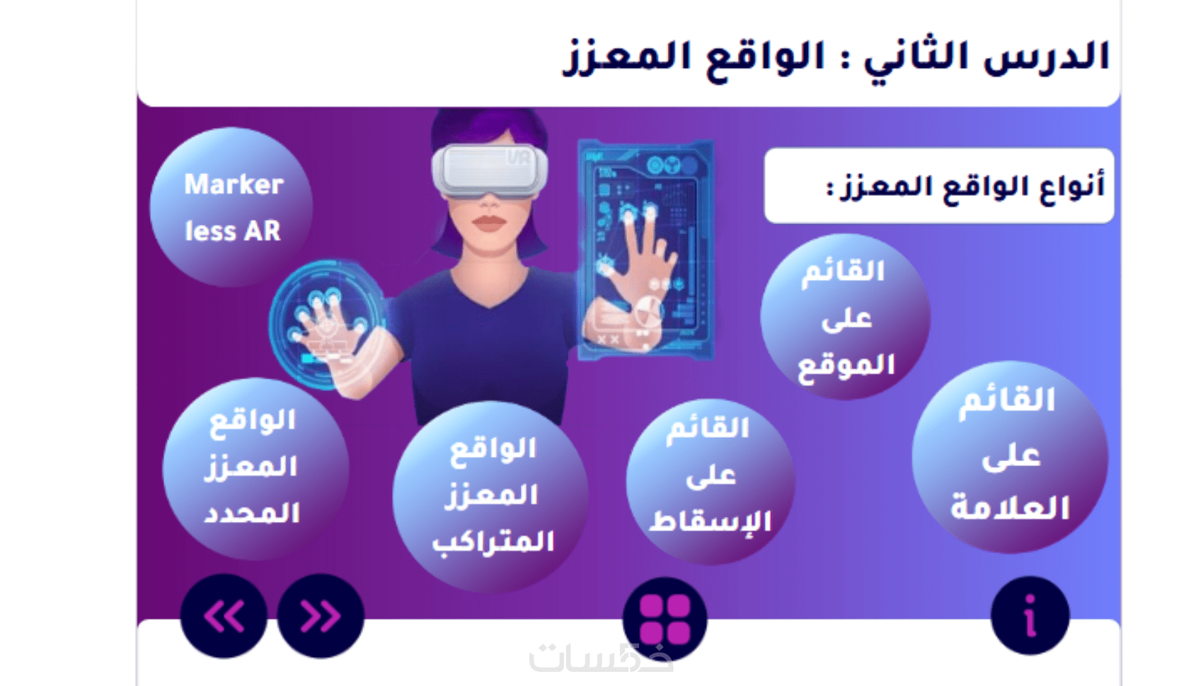 تصميم تعليمي مبتكر يتوافق مع معايير التعلم الرقمي من حيث إضافة أزرار وتنقلات ذكية تجعل المتعلم جزءاً من العملية التعليمية.