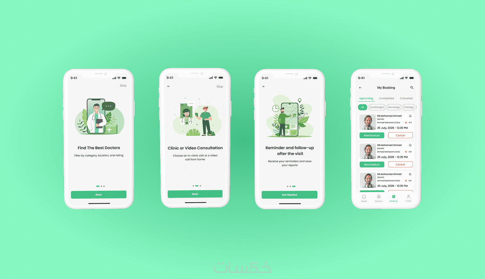 تنظيم الصفحات ← Design System ← تصميم الواجهات ← Prototype جاهز للتطوير.