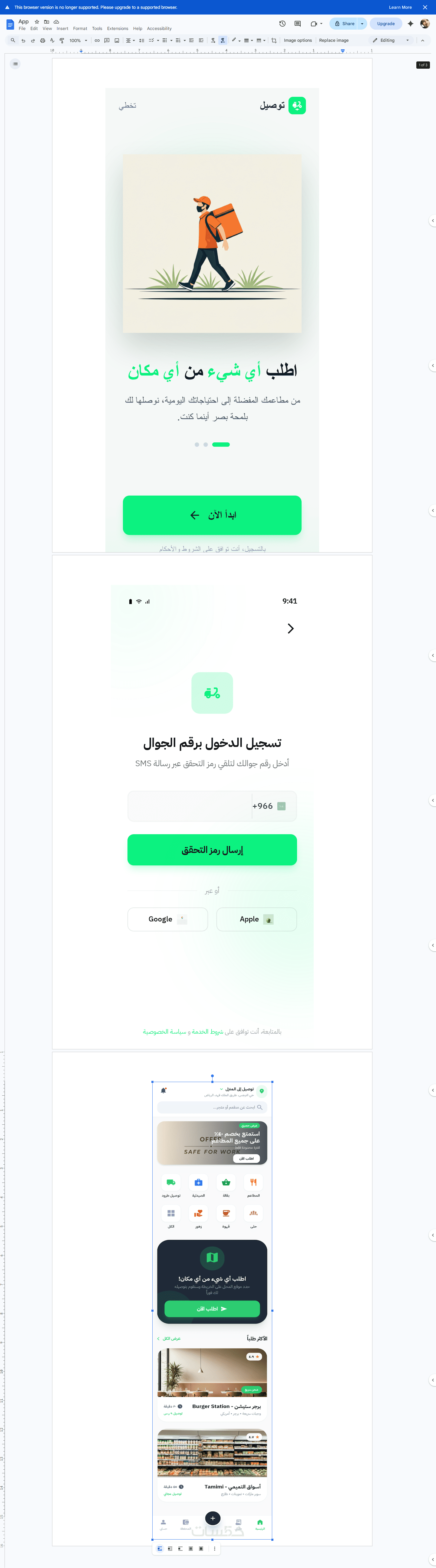 - الخدمة تشمل الشاشات الأساسية فقط للتطبيق