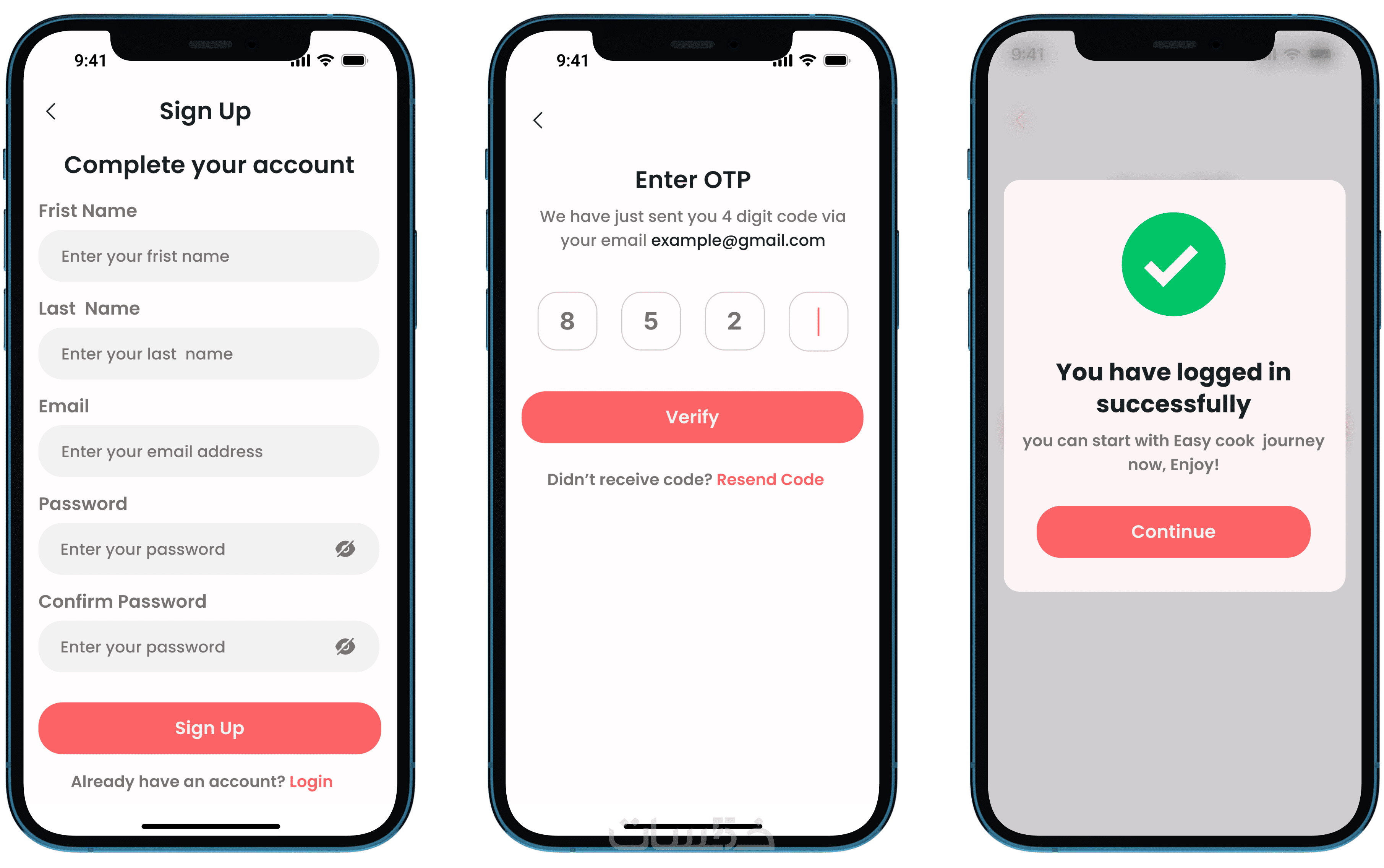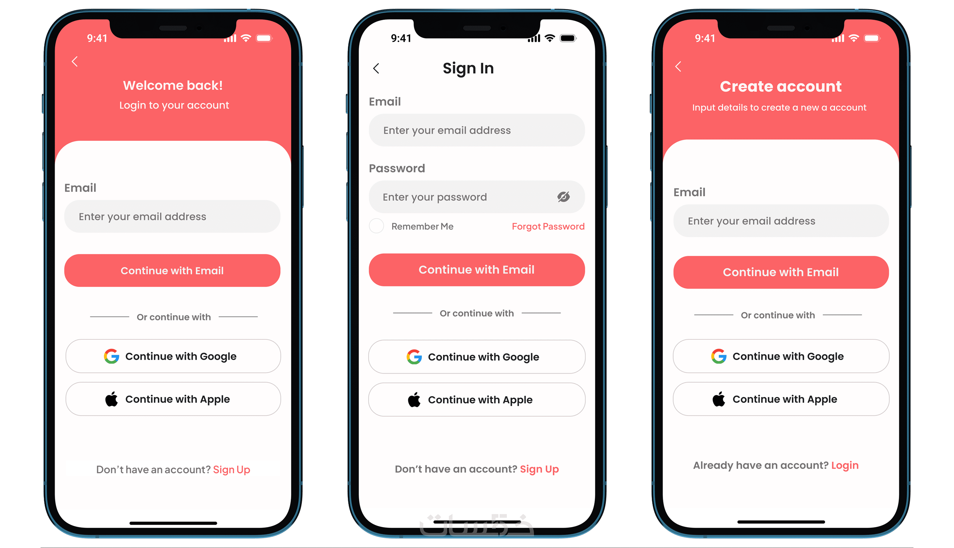 يمكنك اختيار نوع الشاشة (Home / Login / Profile / أو أي شاشة أخرى)