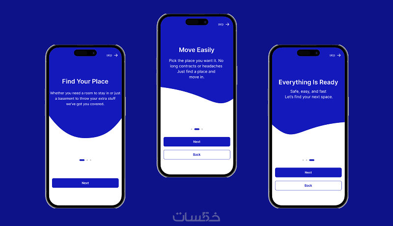 لقد قمت بتصميم واجهات تطبيق متخصص في تأجير المساحات (سواء كانت غرفاً للسكن، بيوت كاملة، أو حتى "بدرومات" ومساحات للتخزين). الفكرة الأساسية من التصميم هي جعل عملية البحث والتأجير سهلة جداً للمستخدم العادي.