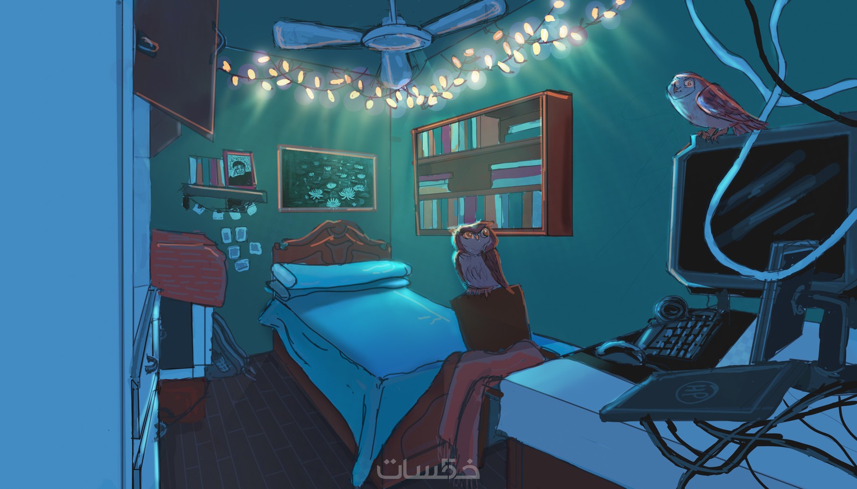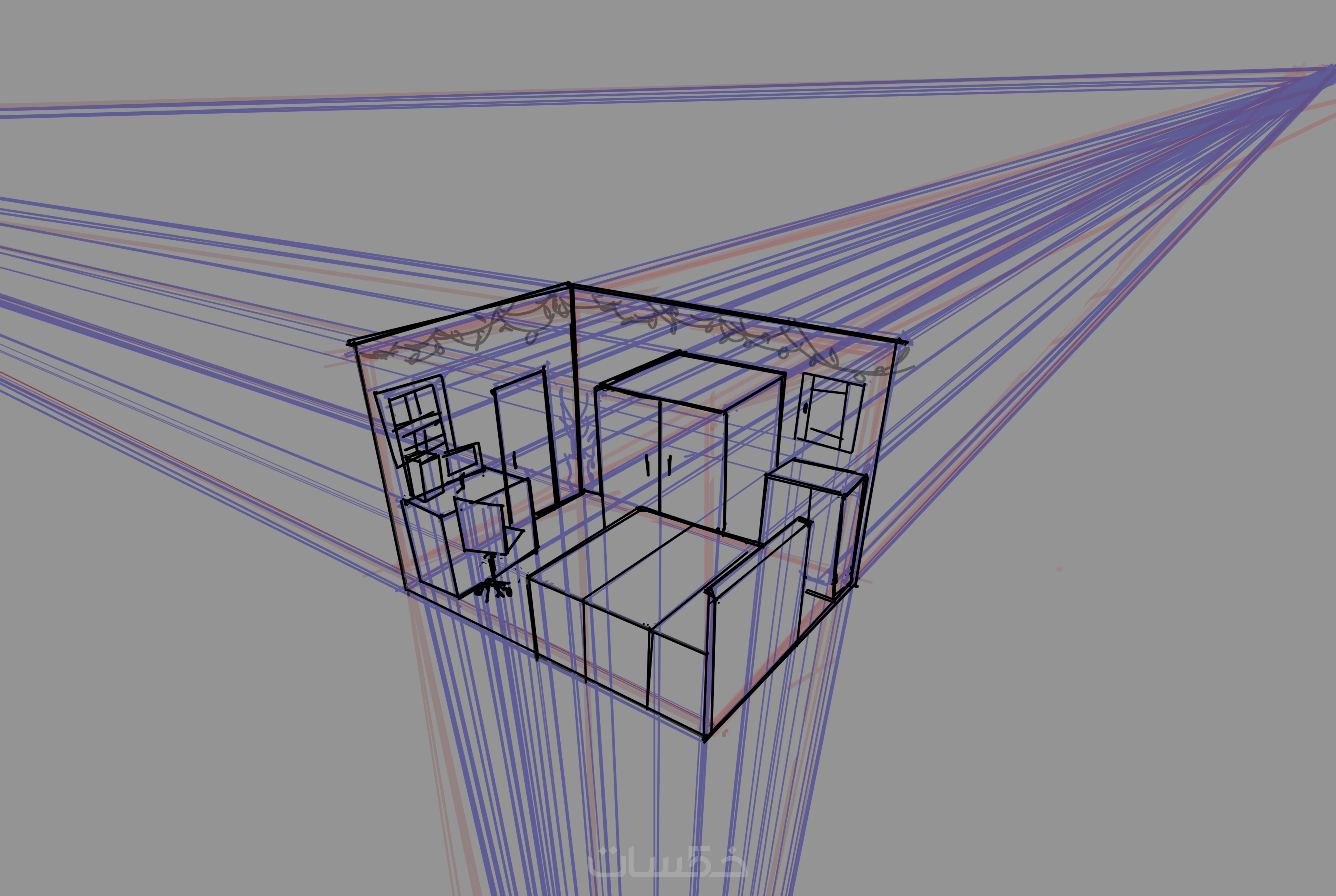 رسم مشاهد داخلية غرف ملونة بأسلوب فني مميز