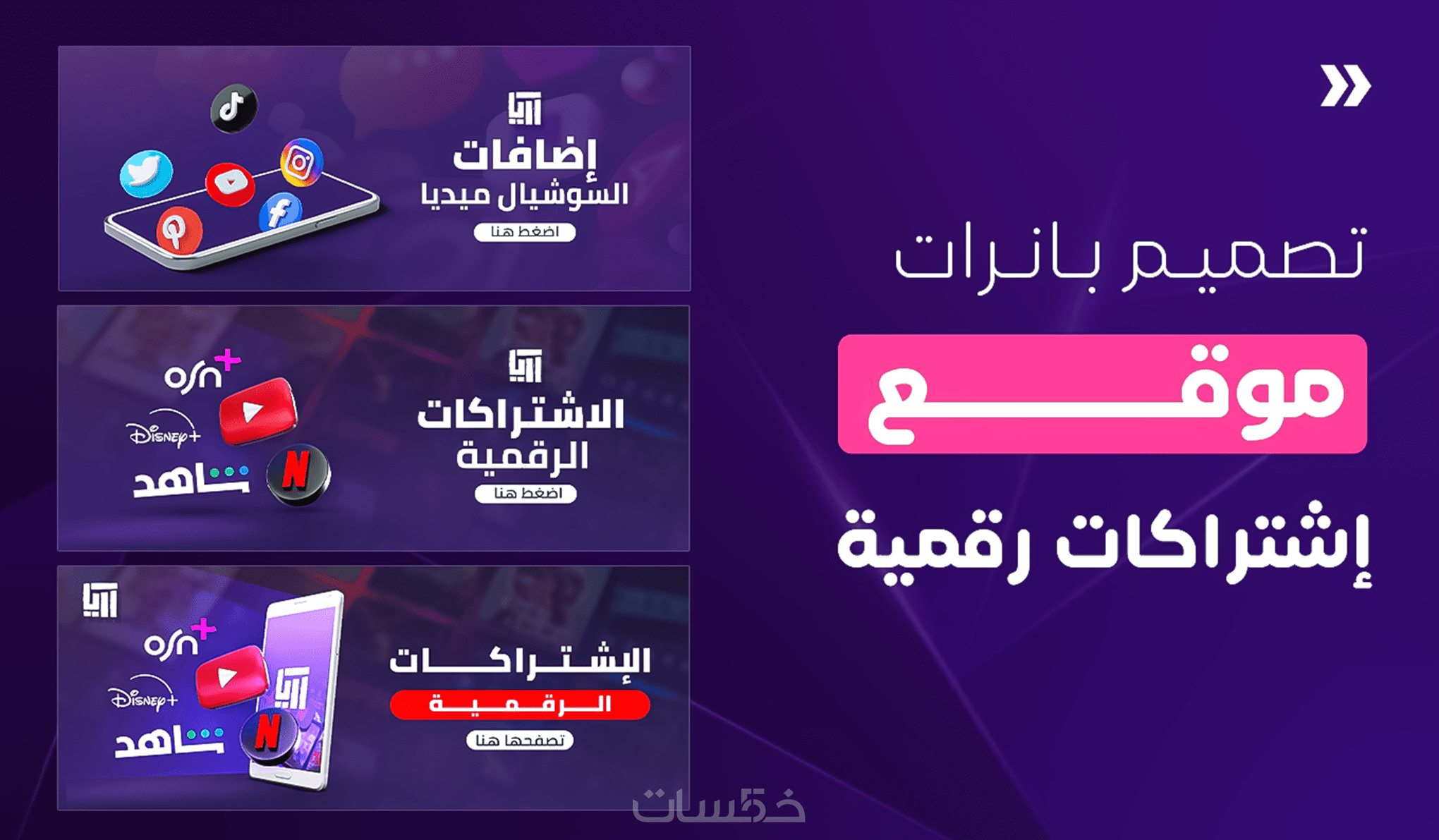 البنرات الإعلانية من أكثر وسائل التسويق انتشارا وفعالية، تساعدك على إيصال رسالتك التسويقية للعميل بشكل يثير فضوله لمعرفة المزيد. مصممو البنرات المحترفون هنا على استعداد لترجمة أفكارك إلى إعلان جذاب يضمن التفاعل معك واتخاذ الإجراء المطلوب من العميل المحتمل.