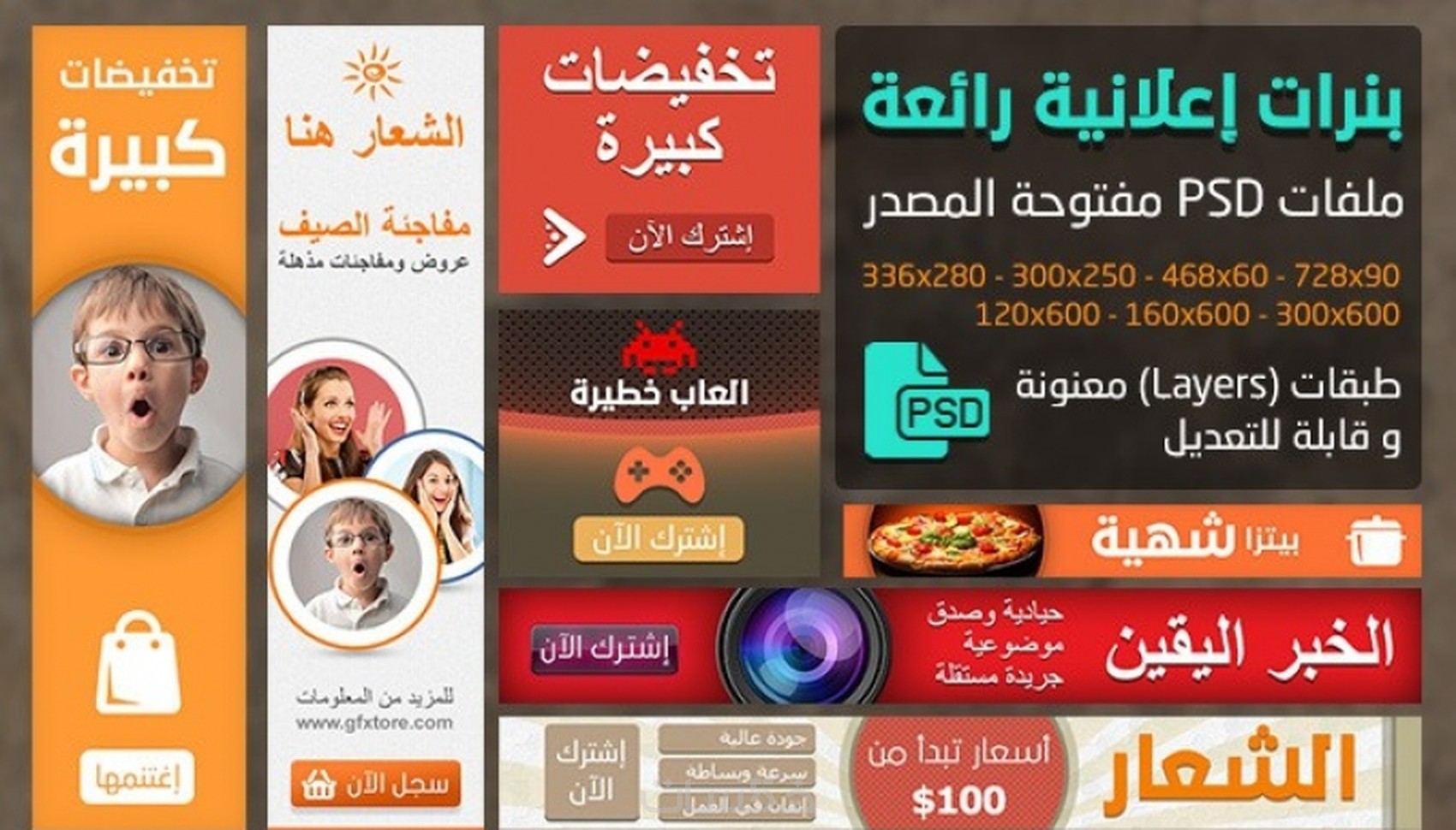 بنر احترافي واحد بأحد مقاسات اعلانات جوجل و حسوب سواء ثابت او متحرك GIF فقط ب 5 دولار